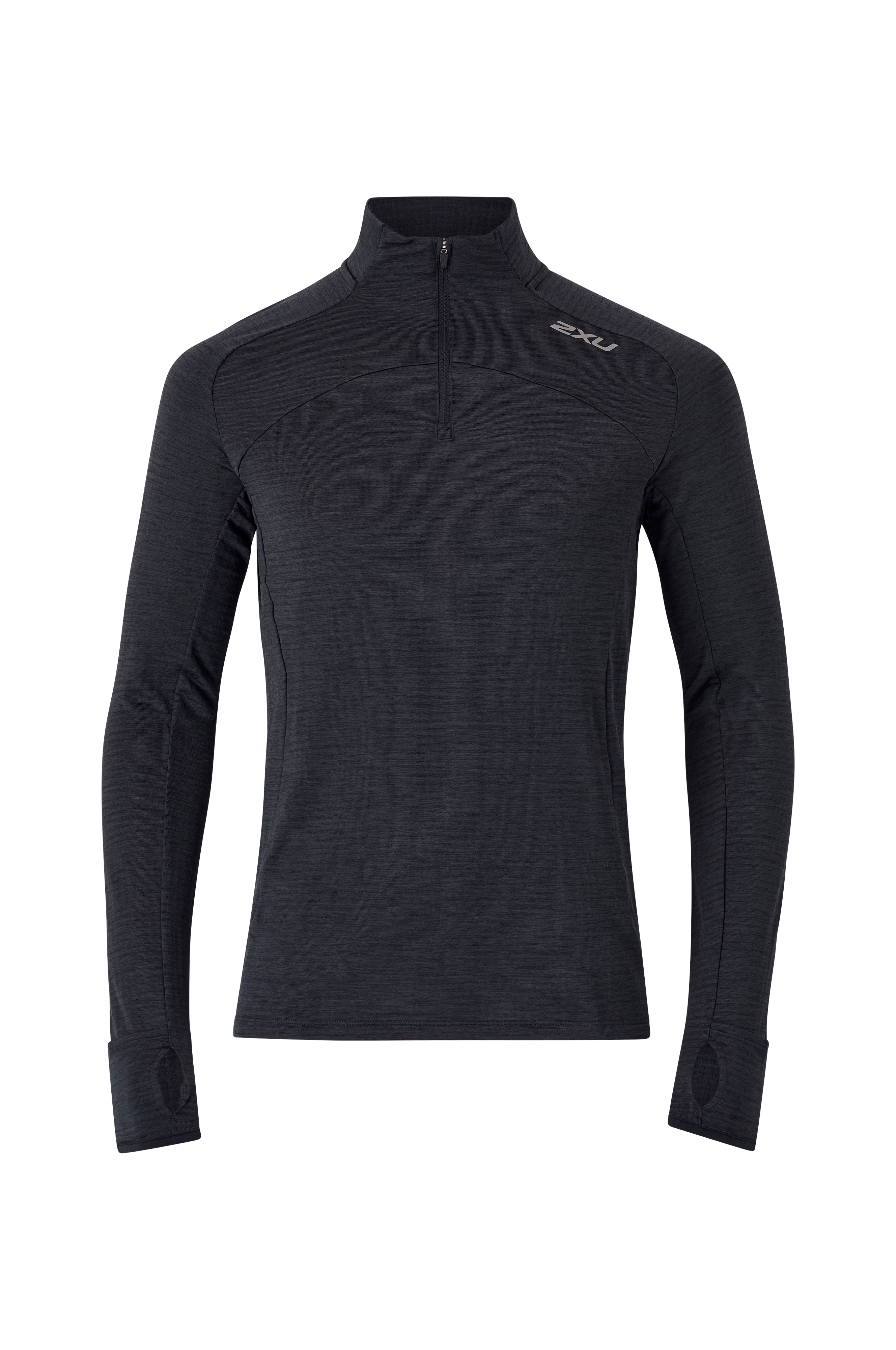 Funktionströja med en återvunnen dubbelstickad våffelstruktur som skapar små luftfickor som fångar kroppsvärmen, ökar andningsförmågan och gör plagget mer snabbtorkande. Ståkrage och 1/4-lång dragkedja. Muddar med tumhål som kan vändas till vantar för att hålla händerna varma. En ficka med dragkedja upptill fram. Reflekterande logotyper.