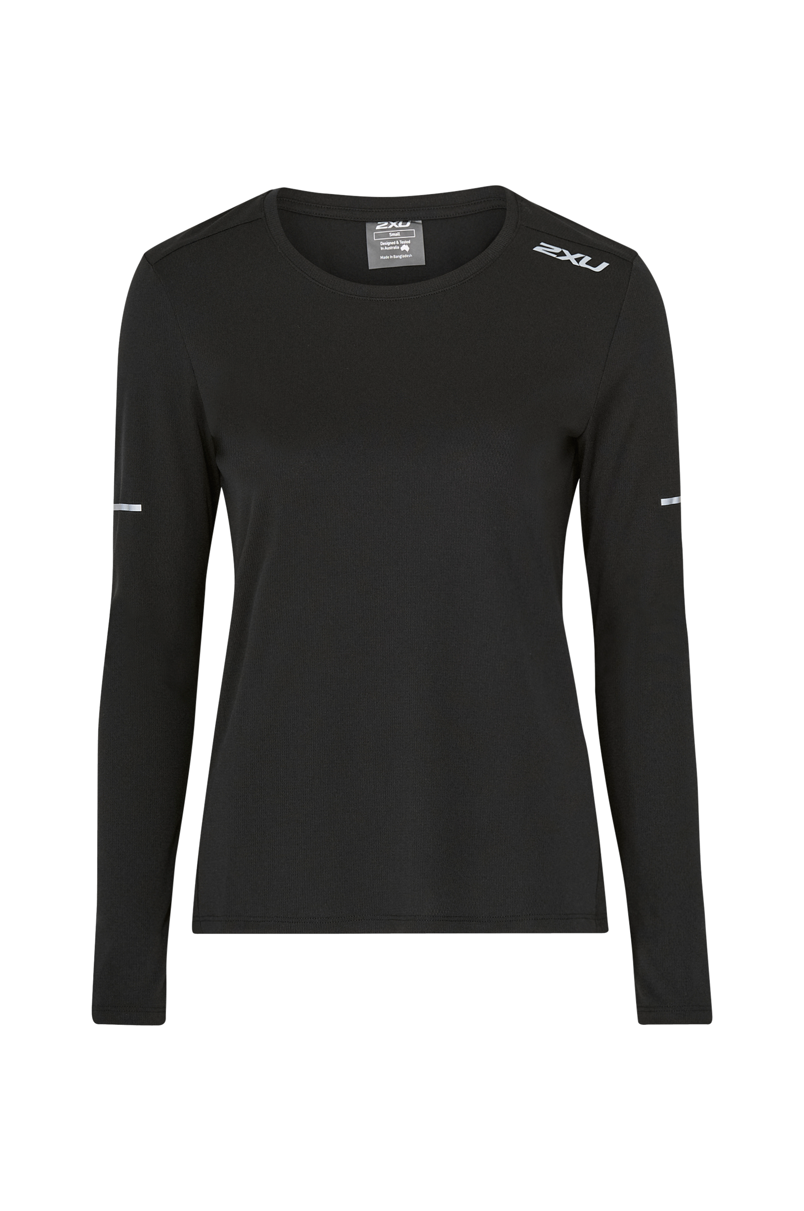 Långärmad löpar-t-shirt med dubbelstickad huvudpanel i fukttransporterande och snabbtorkande tyg. Lätt andningsbar meshpanel på baksidan. Rund halsringning. Reflexdetaljer fram- och baktill samt på ärmarna.