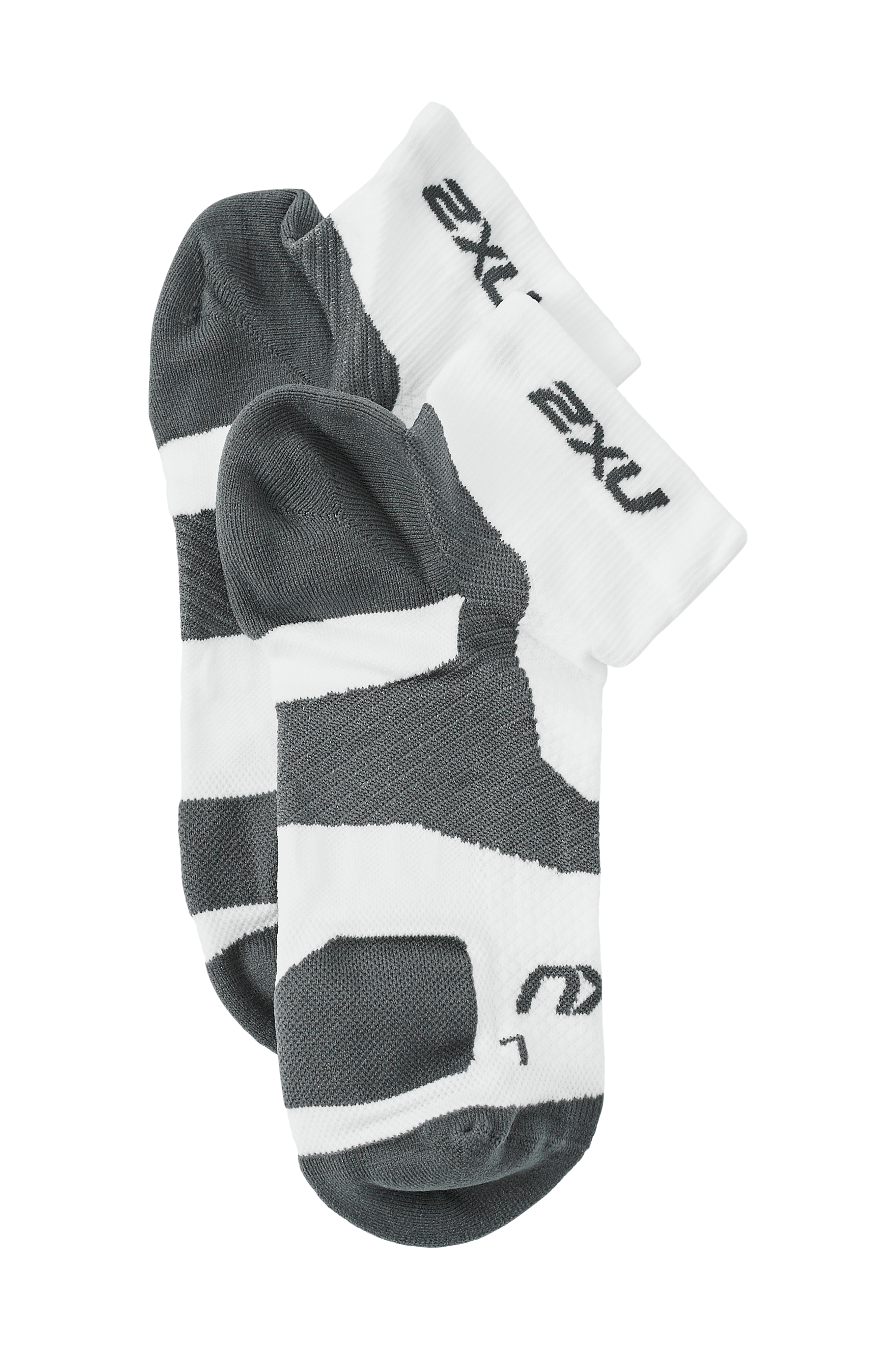 Ankelhöga kompressionsstrumpor som smiter åt runt foten och ger extra stöd åt hålfoten. 2XU:s Lock-teknologi ger kompression och därmed bättre syretillförsel och blodgenomströmning. Sömlös tåkonstruktion minimerar risken för skav. Antiodörbehandlad.