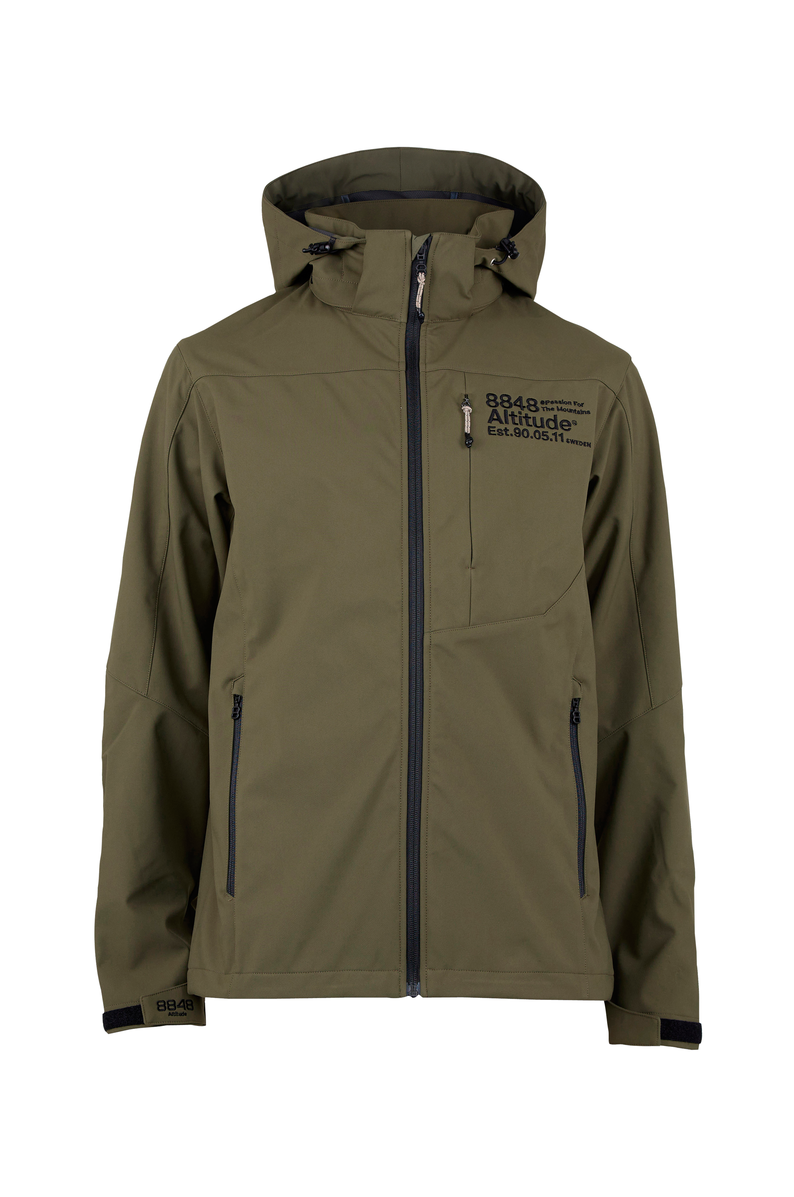 • Jacka i mjuk, stretchig softshell • Piquestruktur på insidan • 3-lagerskonstruktion • Vindtät • Vattenavvisande: 8 000 mm • Andningsförmåga: 6 000g/m2/24h • Avtagbar, justerbar huva • 2 midjefickor med dragkedja • 1 bröstficka med dold dragkedja • Justerbara ärmslut • Brodyr på ärmen och på bröstet • Justerbar nedtill med dragsko • DWR-beläggning fri från fluorkarboner • Längd ca 74 cm i stl S