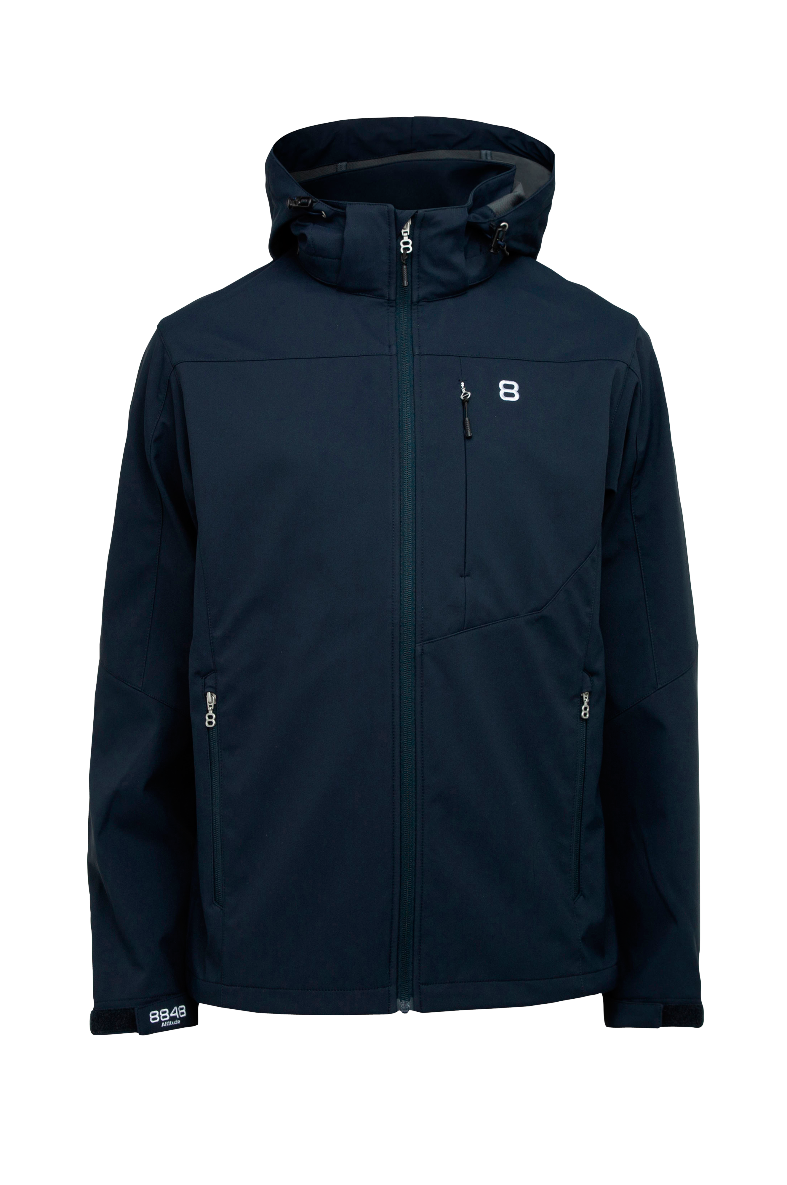 Mångsidig vind- och vattenavstötande softshelljacka med sportig design och passform. Materialet är slitstarkt, har god följsamhet och andningsförmåga samt torkar snabbt. Vattenpelare 8000 mm och andningsförmåga 6000 g/m2/24h. Avtagbar huva som är justerbar med elastisk dragsko. Justerbara ärmavslut med kardborre kring handleden, samt dragsko i nederkant för en personlig passform. Insidan av jackan har en pikémesh med en snygg struktur som ger en exklusiv känsla. Tre ytterfickor med dragkedja. Längd ca 75 cm i stl M.