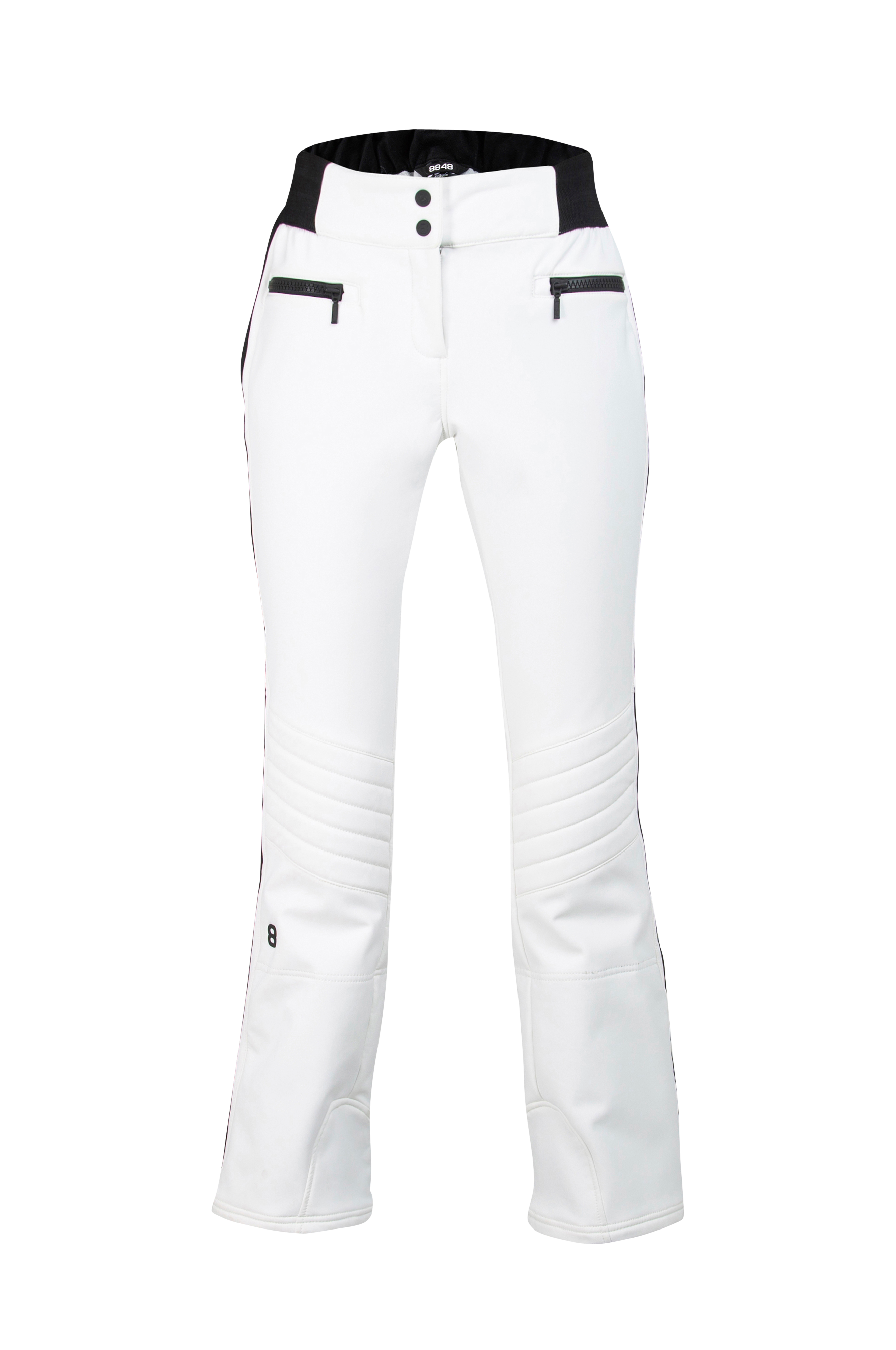 Randy W Pant från 8848 Altitude, trendiga skidbyxor i superstretchigt material som gör att byxan formar sig perfekt efter kroppen. Byxans passform är superslimmad och ger en snygg figur som följer de kvinnliga formerna på ett smickrande sätt. Följsamt softshell-material med fleece på insidan, som passar hela säsongen. Vind- och vattentäta i tyget durAtec Super Stretch med 4-vägsstretch. Vattenpelare 8000 mm och hög andasförmåga 6000 g/m2/24h. Elastisk linning med två hyskor/hakar fram och gylf med dragkedja. Två fickor fram med dragkedja. Stretchpaneler längs benen. Quiltade partier på knäna och förformade knän för bättre passform och rörlighet. Förstärkningar och utvidgande dragkedjor i bensluten. Elastiska snölås i bensluten med silikondetaljer som hjälper till att hålla byxan på plats och stänga ute snön. Beninnerlängd ca 76 cm i stl 36.