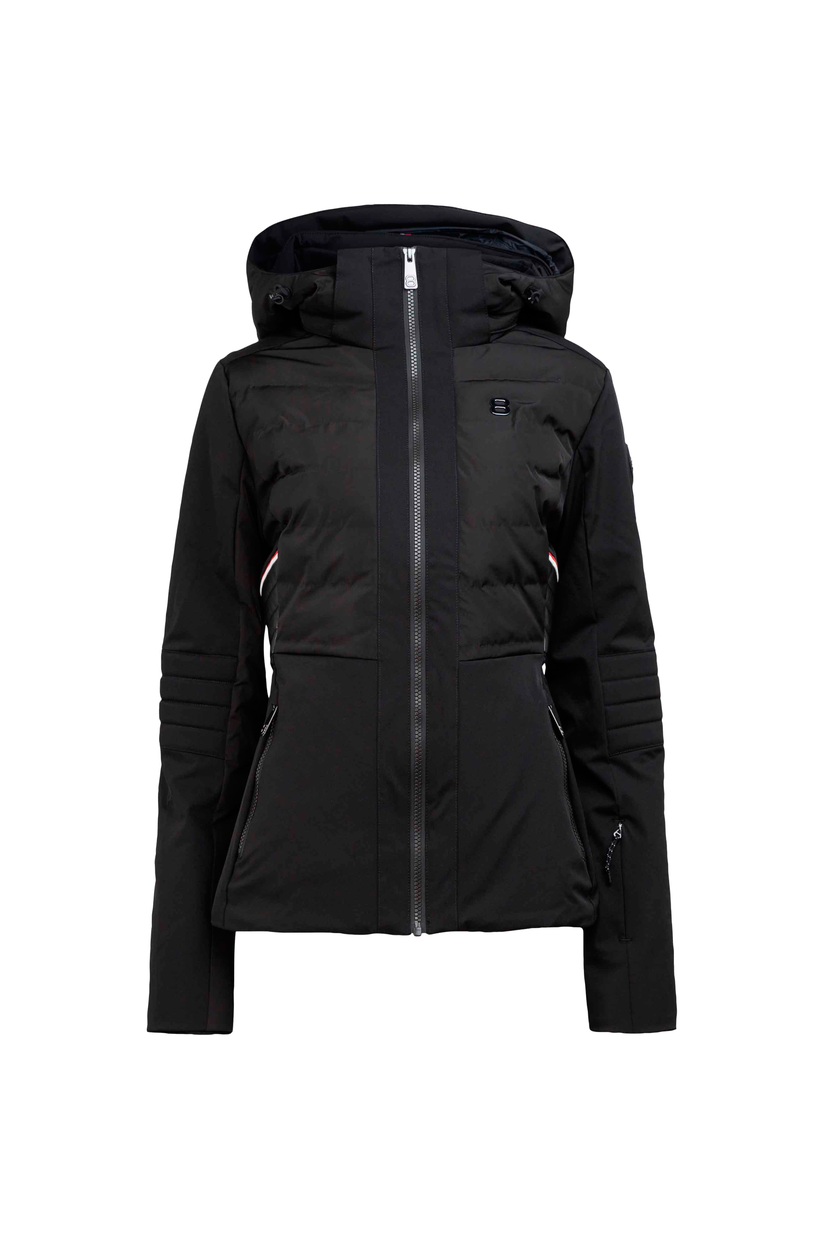 En sportig, vatten- och vindtät skidjacka i exklusiva material. Quiltade partier på bröst och rygg i sömlös Ultra Sonic-teknik som minskar risk för läckage. Övriga delar av jackan är i smidig 4-vägsstretch. Lätt och bekväm känsla tack vare den syntetiska fyllningen Primaloft® Silver Eco Thermo Plume med dunkänsla. Partier som inte är quiltade har en 120 grams polyestervaddering. Längd ca 64 cm i stl 36.
