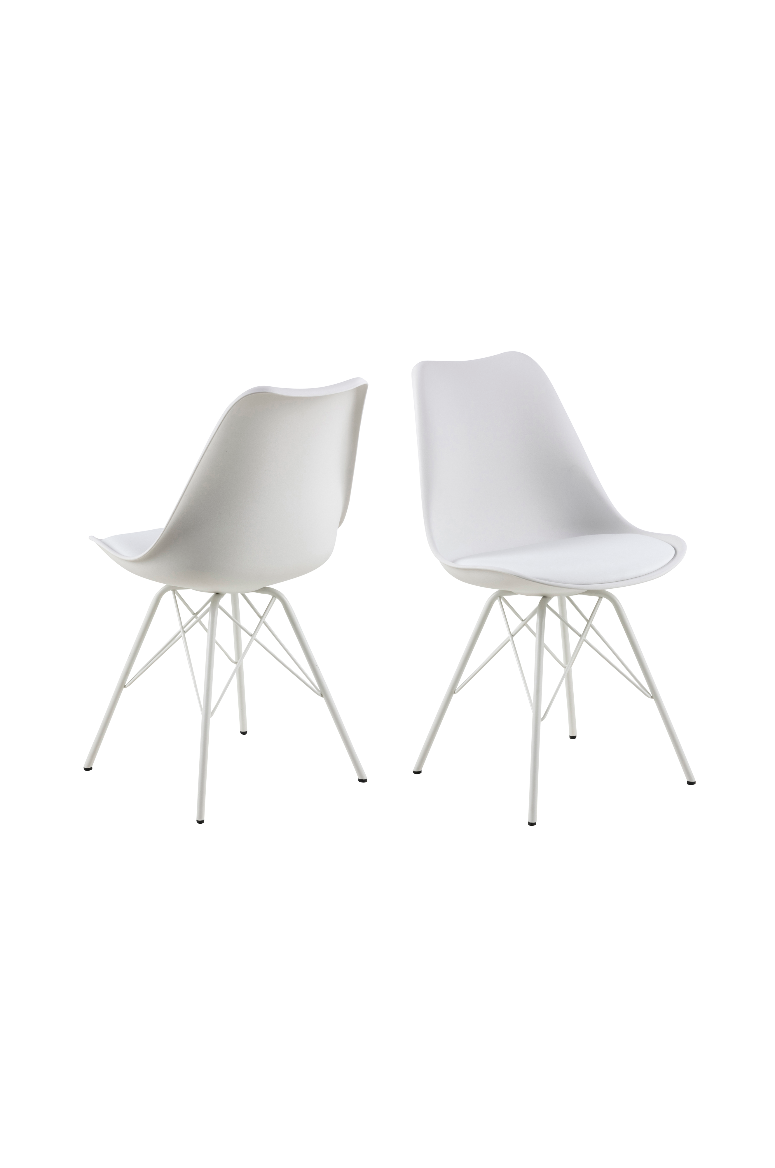 Stol med metallstomme och formgjuten plastsits och stoppad dyna av PU. Höjd 85,5, djup 54, bredd 48,5 cm. Sitthöjd 49, sitt djup 42 cm. Montera själv.