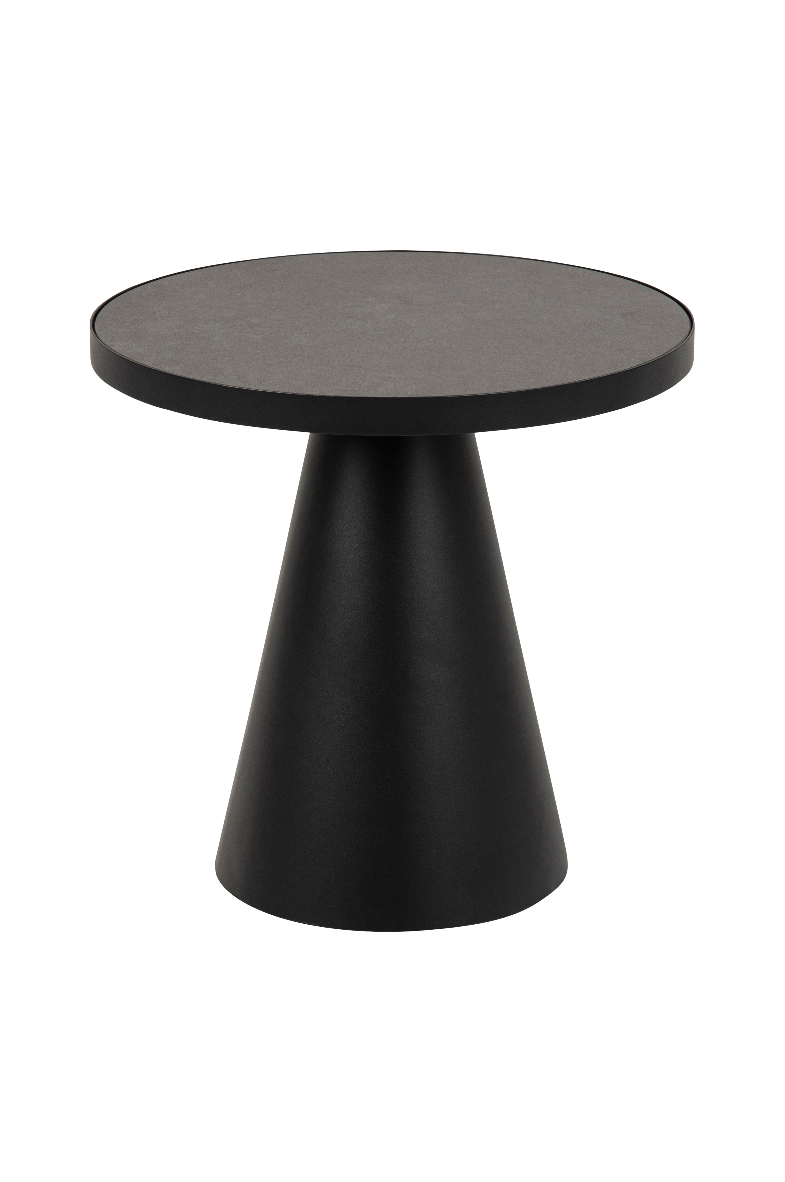 Soffbord Solen. Stomme av metall och skiva av keramikglas. Diameter 45,7 cm, höjd 45 cm. Levereras omonterat.