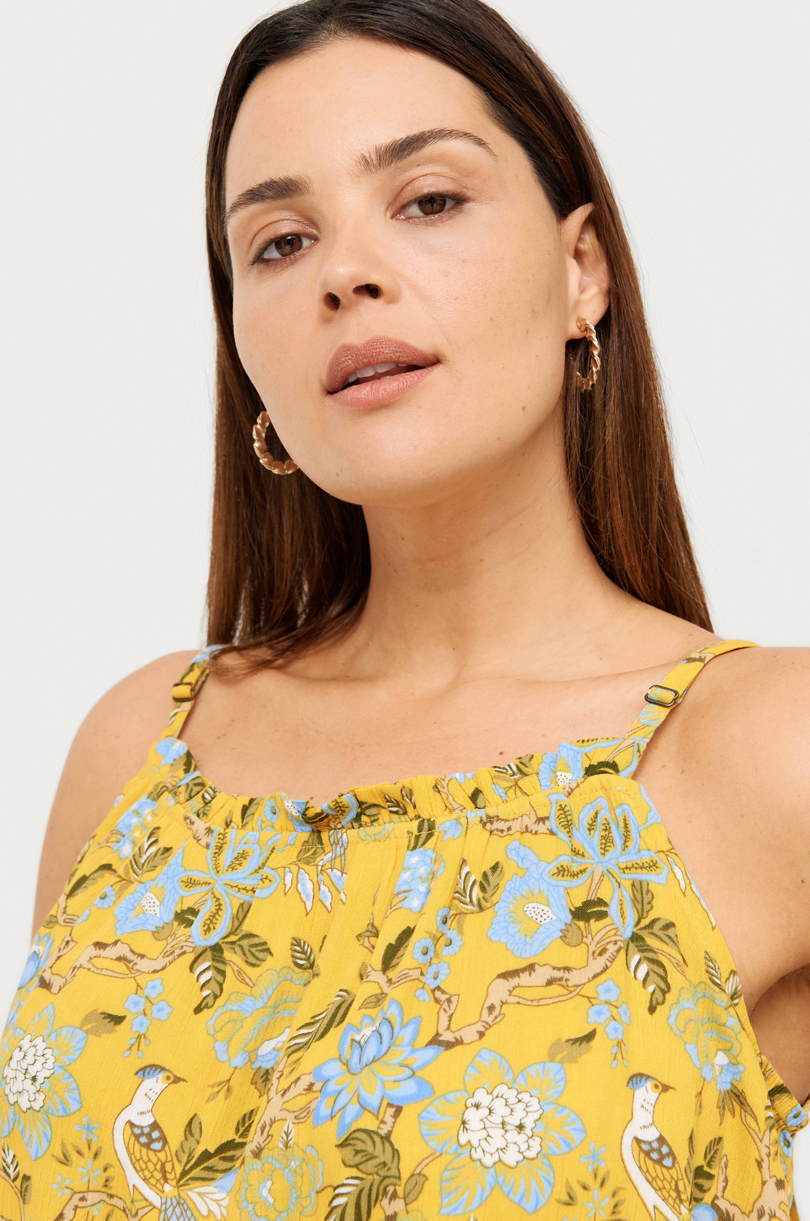 • Ärmlös design• Smala, justerbara axelband• Volang i halsen• Lätt krinklad kvalitet• Plusstorlekar