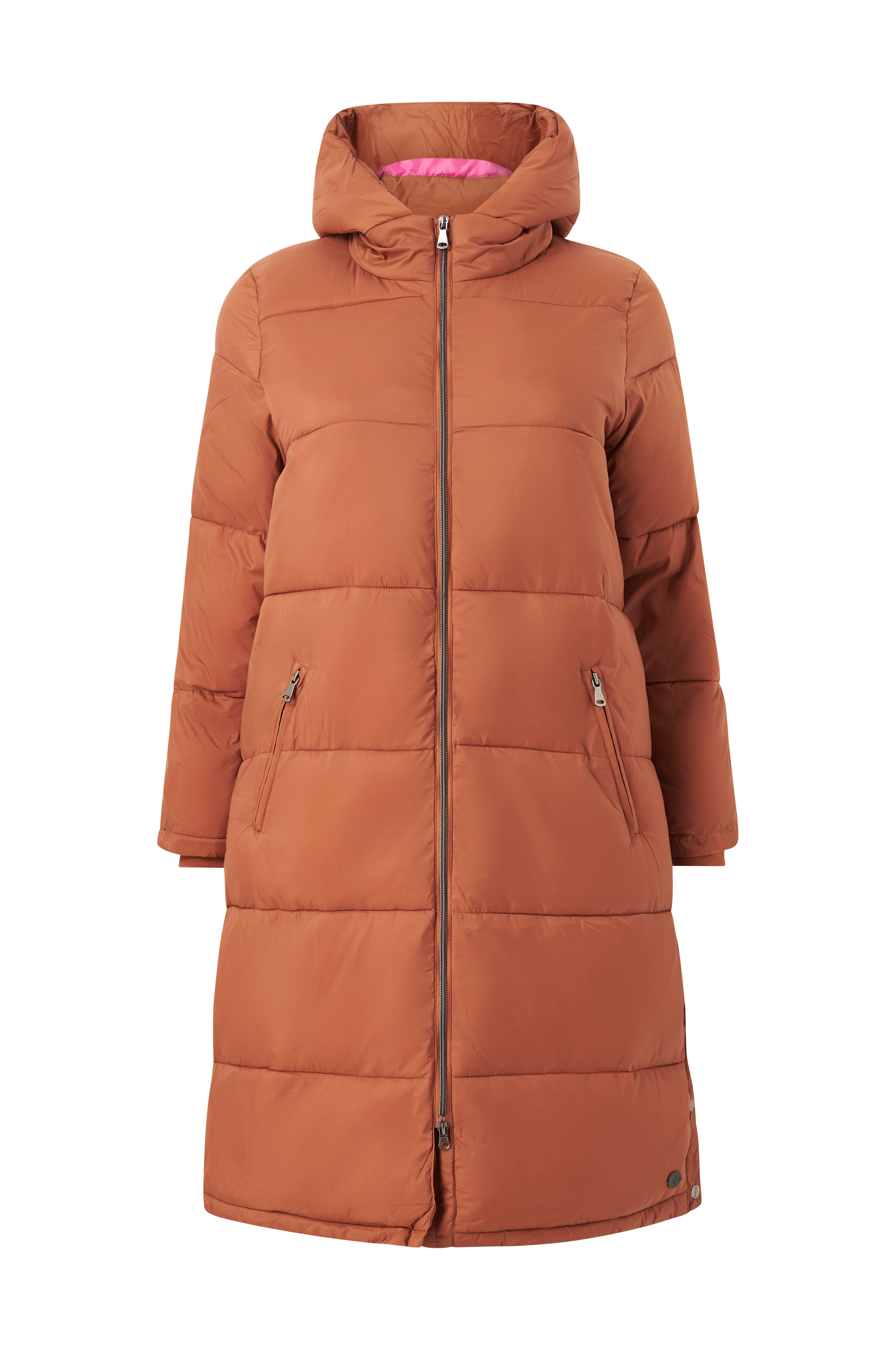 • Quiltad, vadderad kappa• Oversizemodell• Fast huva• Tvåvägsdragkedja• Två dragkedjefickor• Ribbmuddar i ärmsluten• Slitsar med tryckknappar nedtill i sidorna• Plusstorlekar• Längd: 109 cm i storlek 42