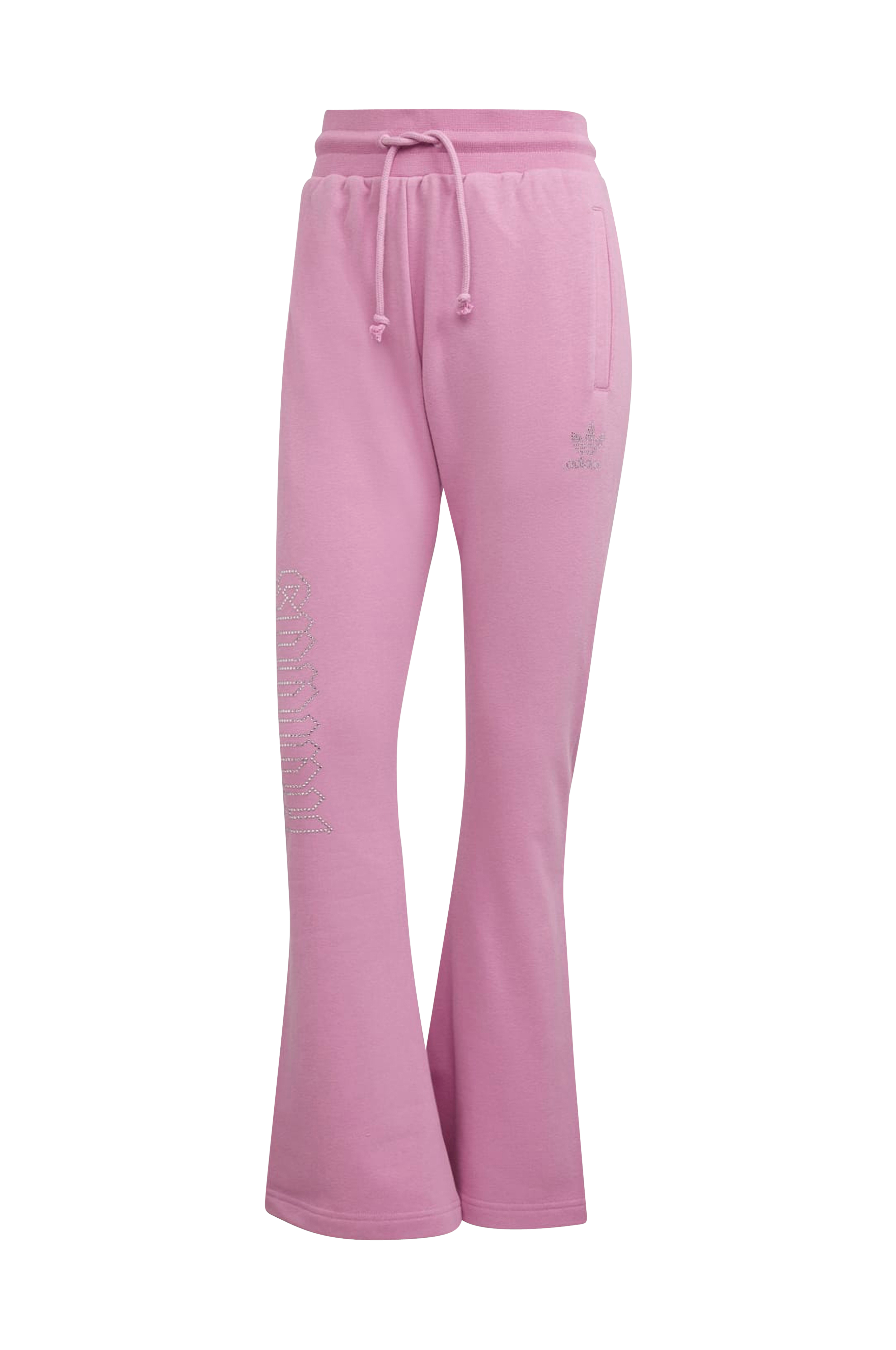 Joggingbyxor från Adidas med strasslogo på benen och lätt utställda benslut. Bred, elastisk midja med dragsko. Fickor i sidorna. Beninnerlängd ca 81 cm i stl S.