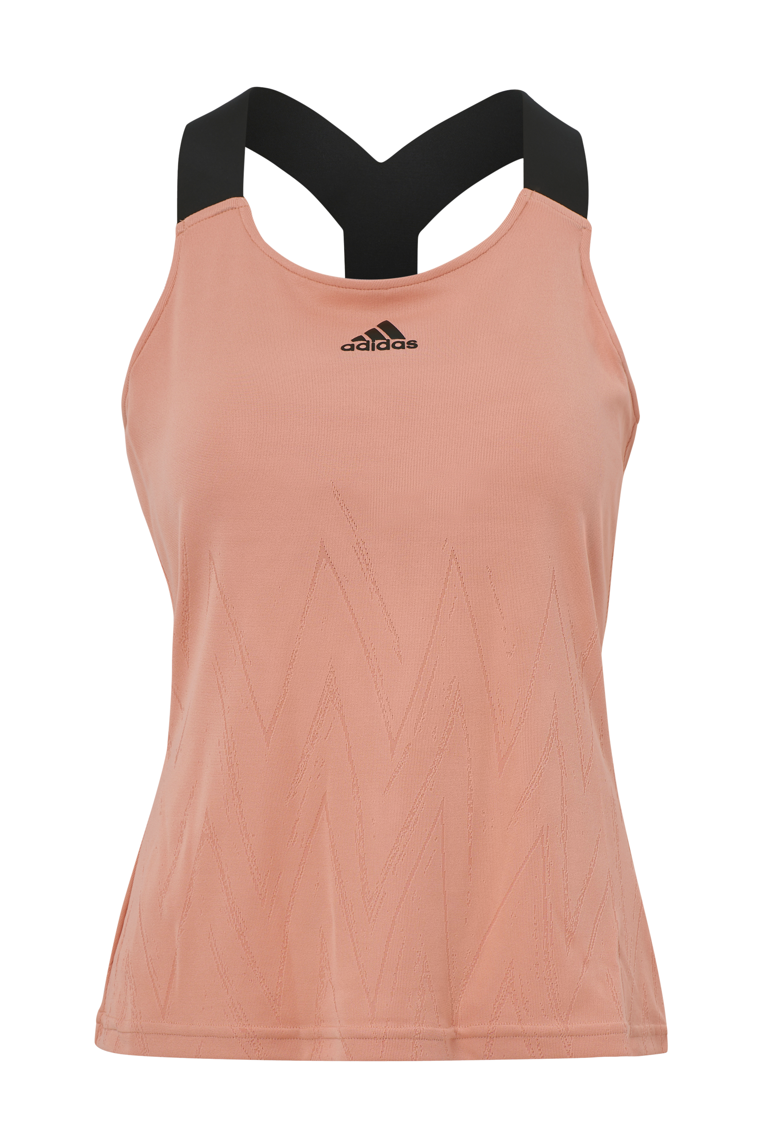 Padellinne/tennislinne i stretchigt material med smal passform och djup ringning, tillverkat i fuktabsorberande adidas Aeroknit-jacquard i 100 % återvunnen polyester. Elastiskt Y-bakstycke som ger dig utrymme för kraftfulla slag. Inbyggd bh med urtagbara kupor.