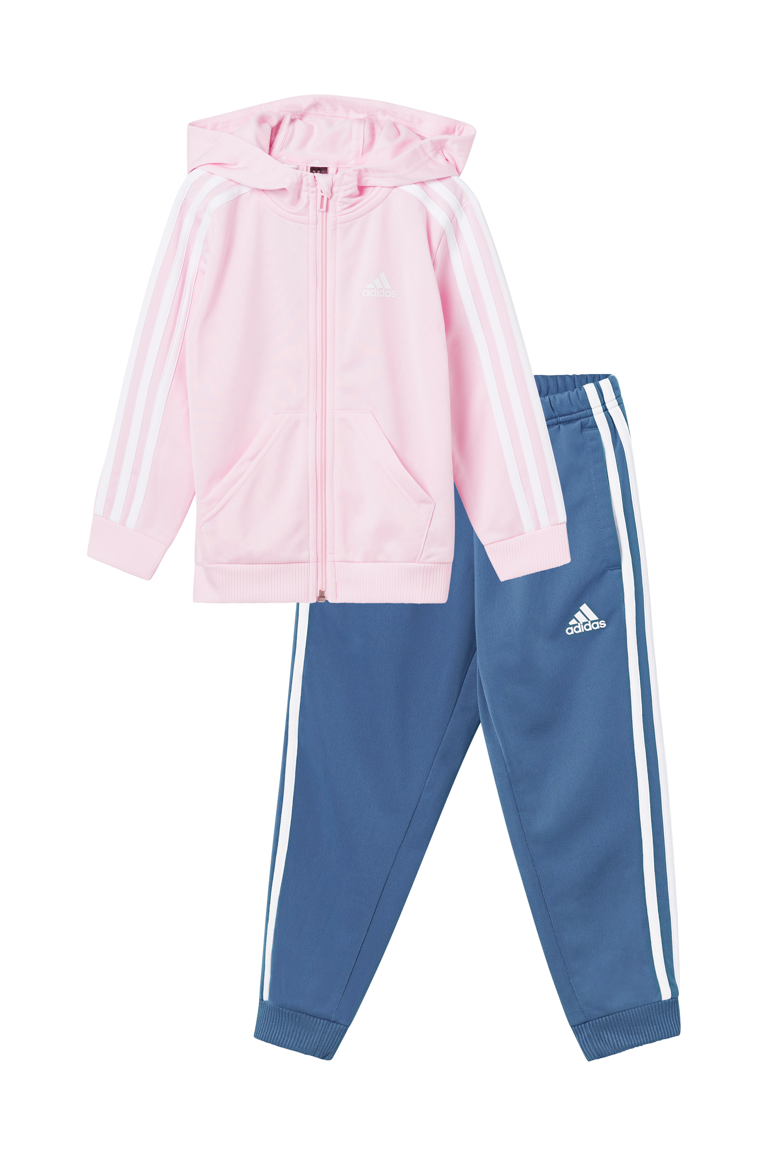 • Joggingset i lätt glansig trikå• Huvtröja med dragkedja och fickor fram• Byxor med elastisk midja och invändig dragsko• Ribbade muddar i ärmslut och benslut