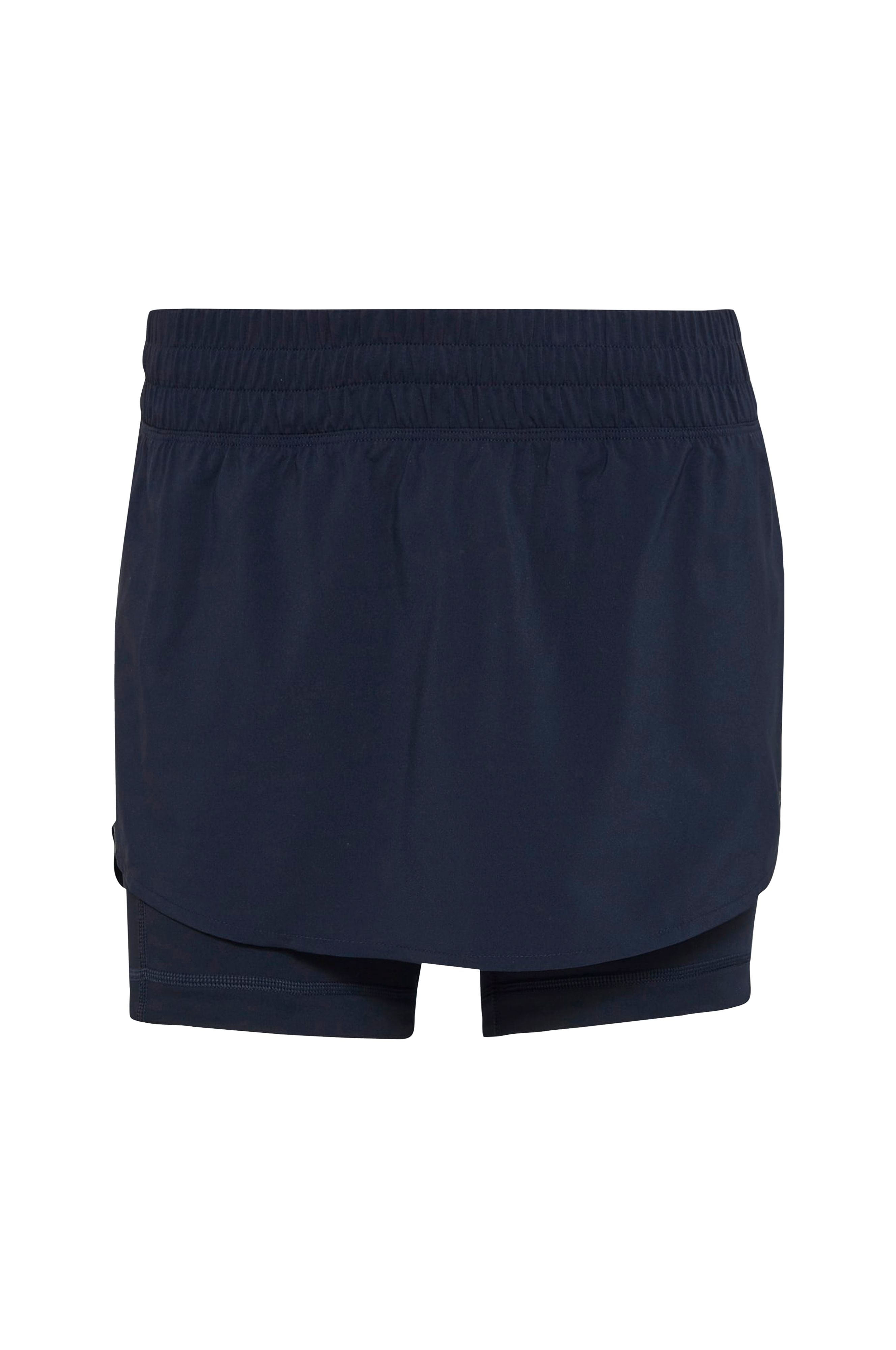 Kjolshorts för löpning. Kjolen är tillverkad i ett stretchigt, vävt material och de stretchiga innershortsen har silikonband på insidan för antiglid. AEROREADY hanterar fukt så att du håller dig torr. Elastisk midja med invändig dragsko och en sidficka.
