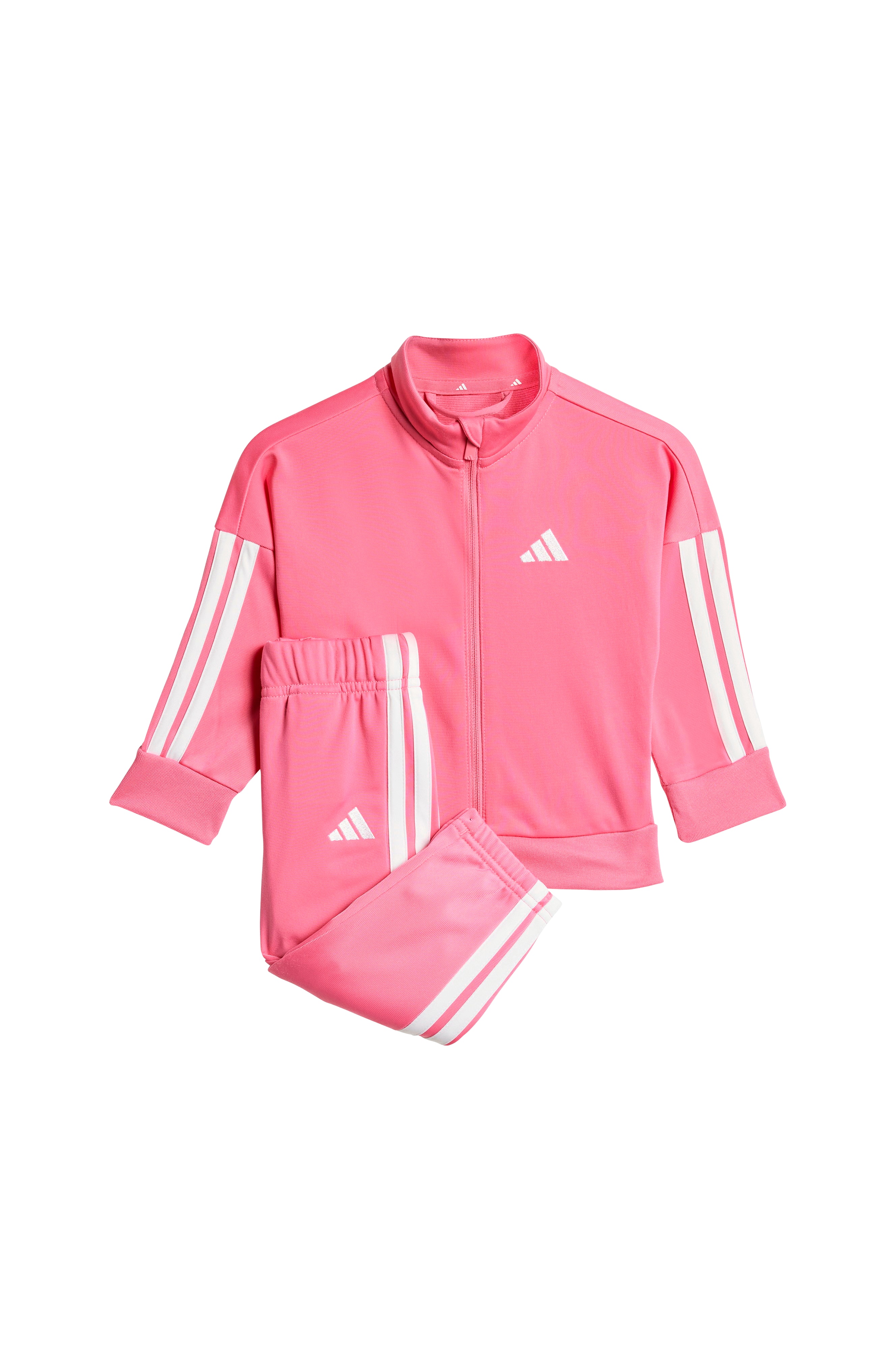 • Sportigt träningsset i mjuk, lätt glansig trikå• Jacka med hög krage• Dragkedja• Ribbmuddar i ärmsluten och nedtill• Byxor med elastisk midja med invändig dragsko