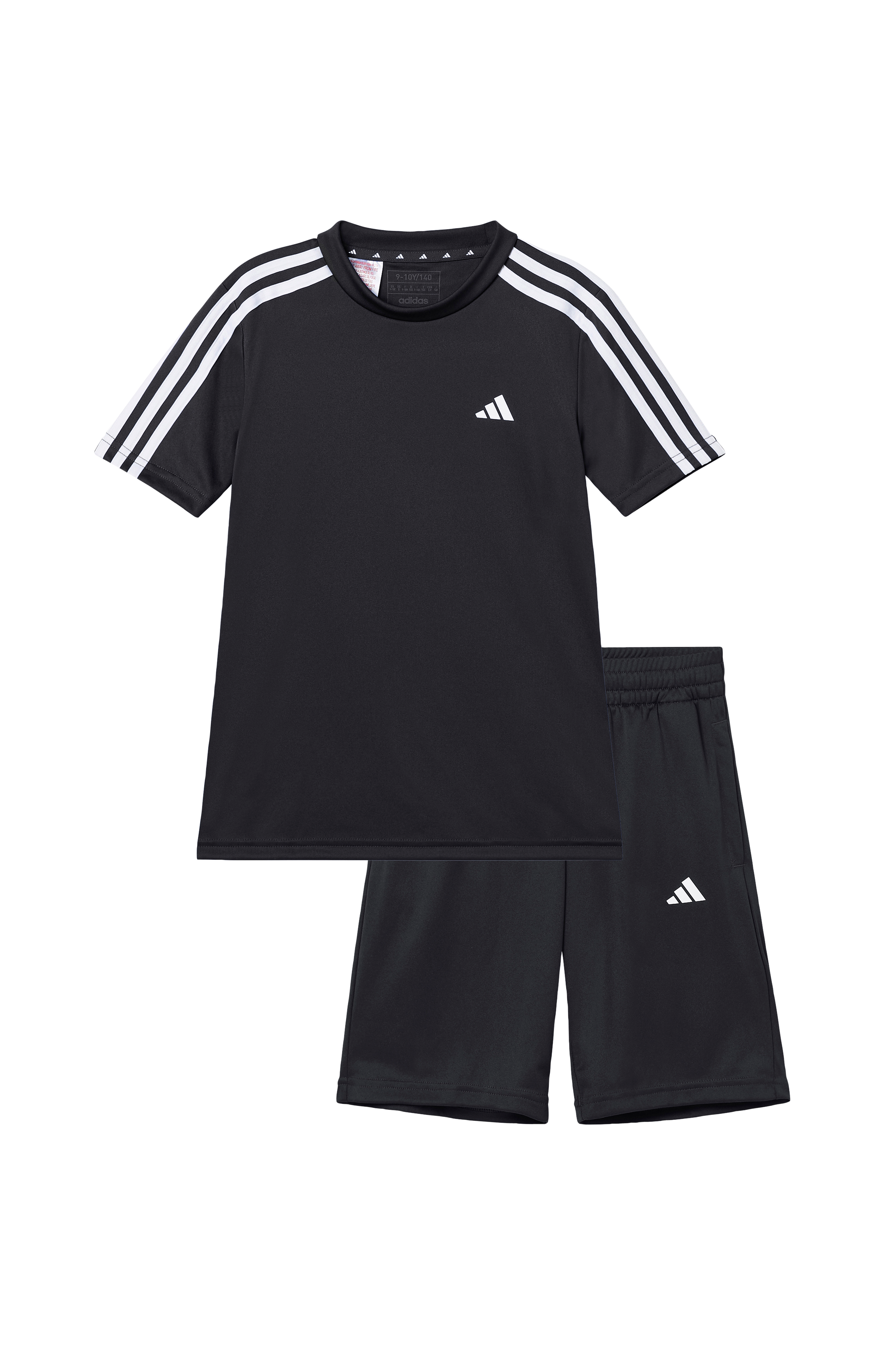 Träningssetet med t-shirt och shorts, gjorda i ett lätt material med fuktabsorberande AEROREADY. T-shirten har rund, ribbad halsringning. Shortsen har elastisk linning med invändig dragsko och sidfickor.