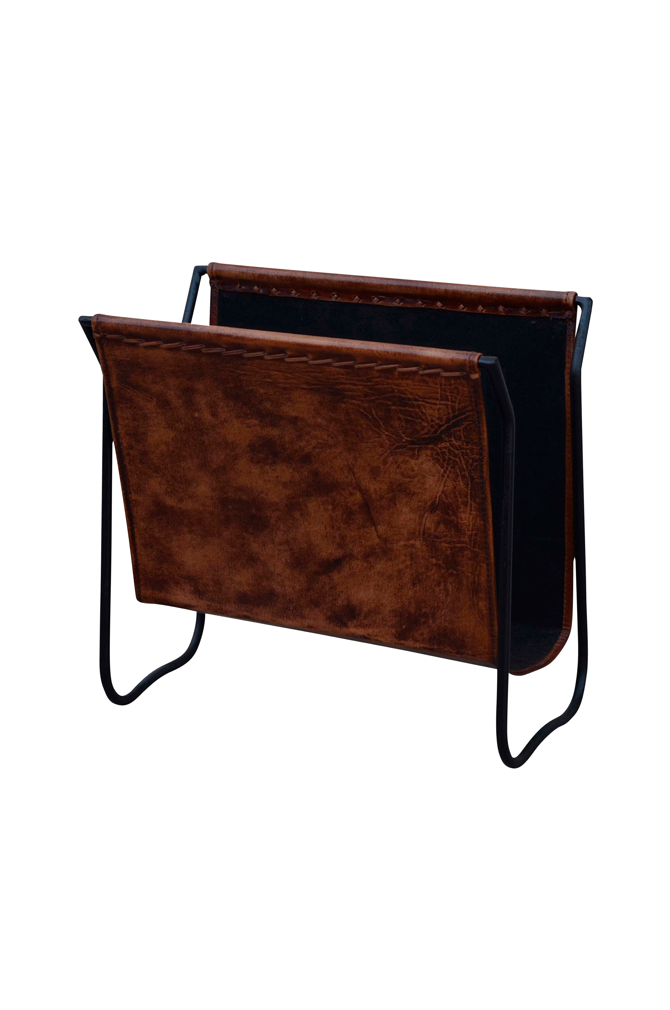 Tidningsställ Kvalster i brunt skin med svarta järnben. Levereras monterad