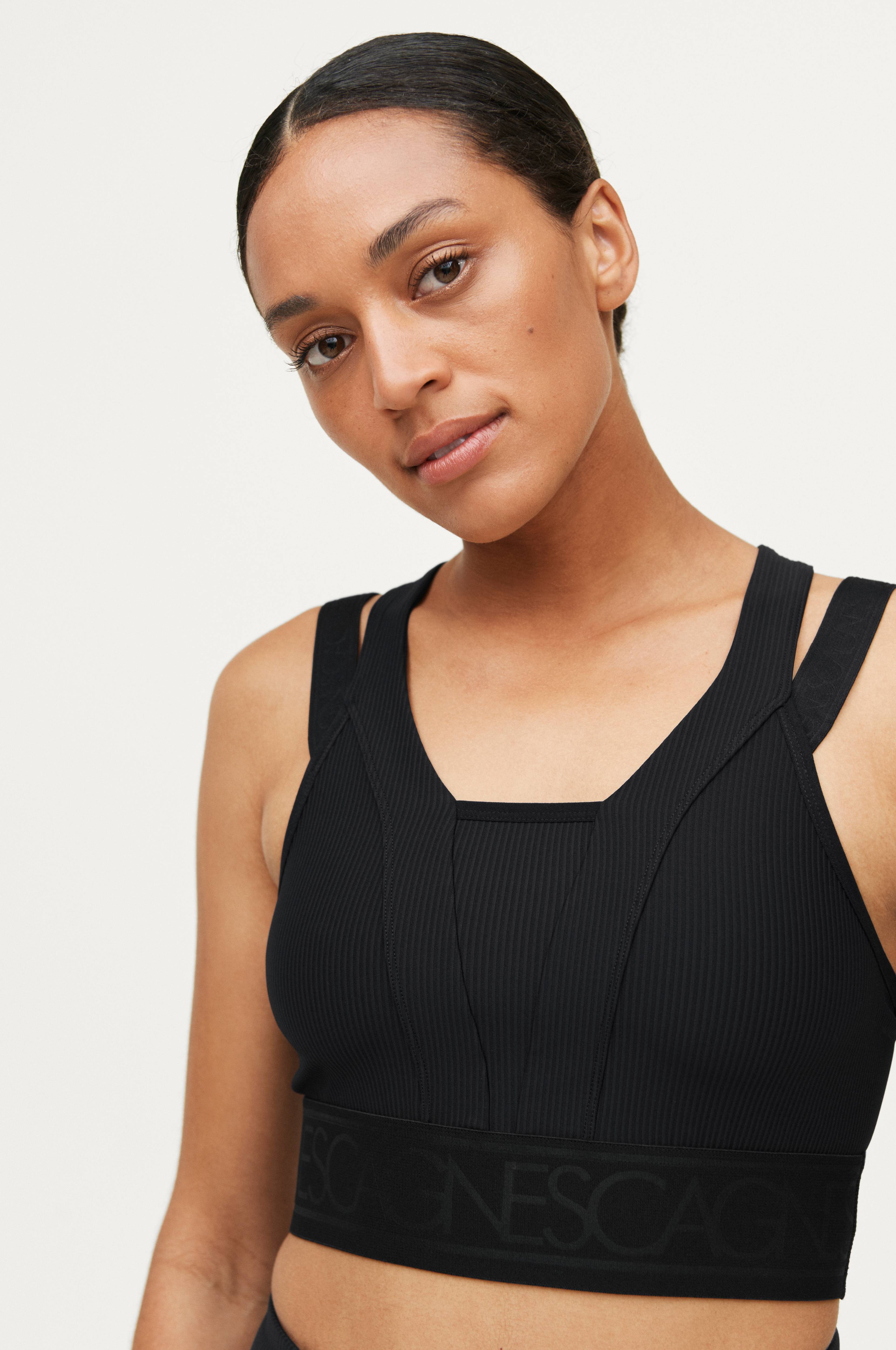 Kort träningstopp i ett ribbat funktionsmaterial som transporterar bort fukt från huden. Mesh i ryggen för extra ventilation. Dubbla, elastiska axelband och bred resårkant nedtill.