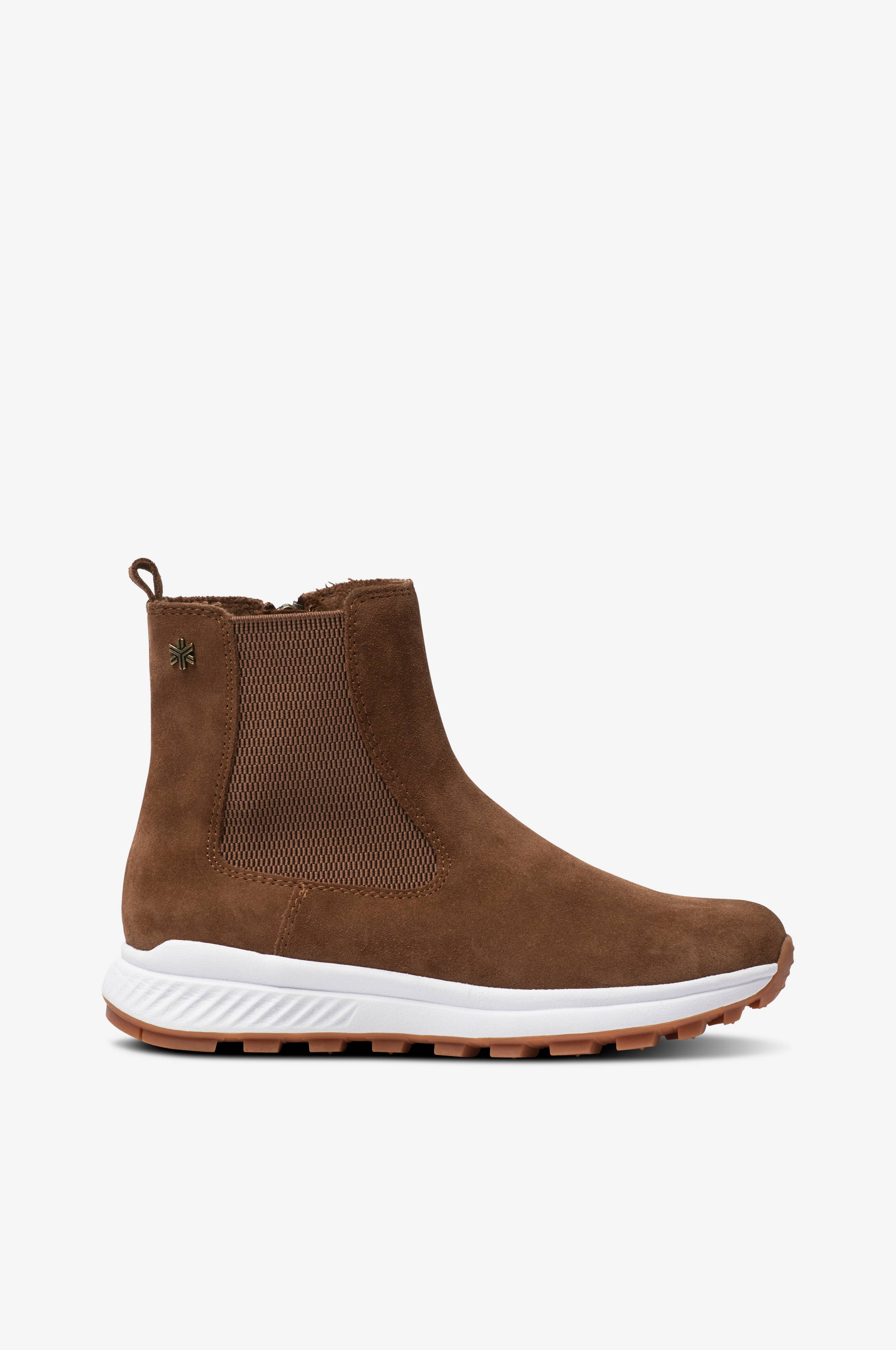 Boots i mocka med dragkedja på skaftets insida och resårinfällning på skaftets utsida. Materialet är impregnerat vilket ger en vatten- och smutsavvisande yta. Skafthöjd ca 13 cm i stl 37.