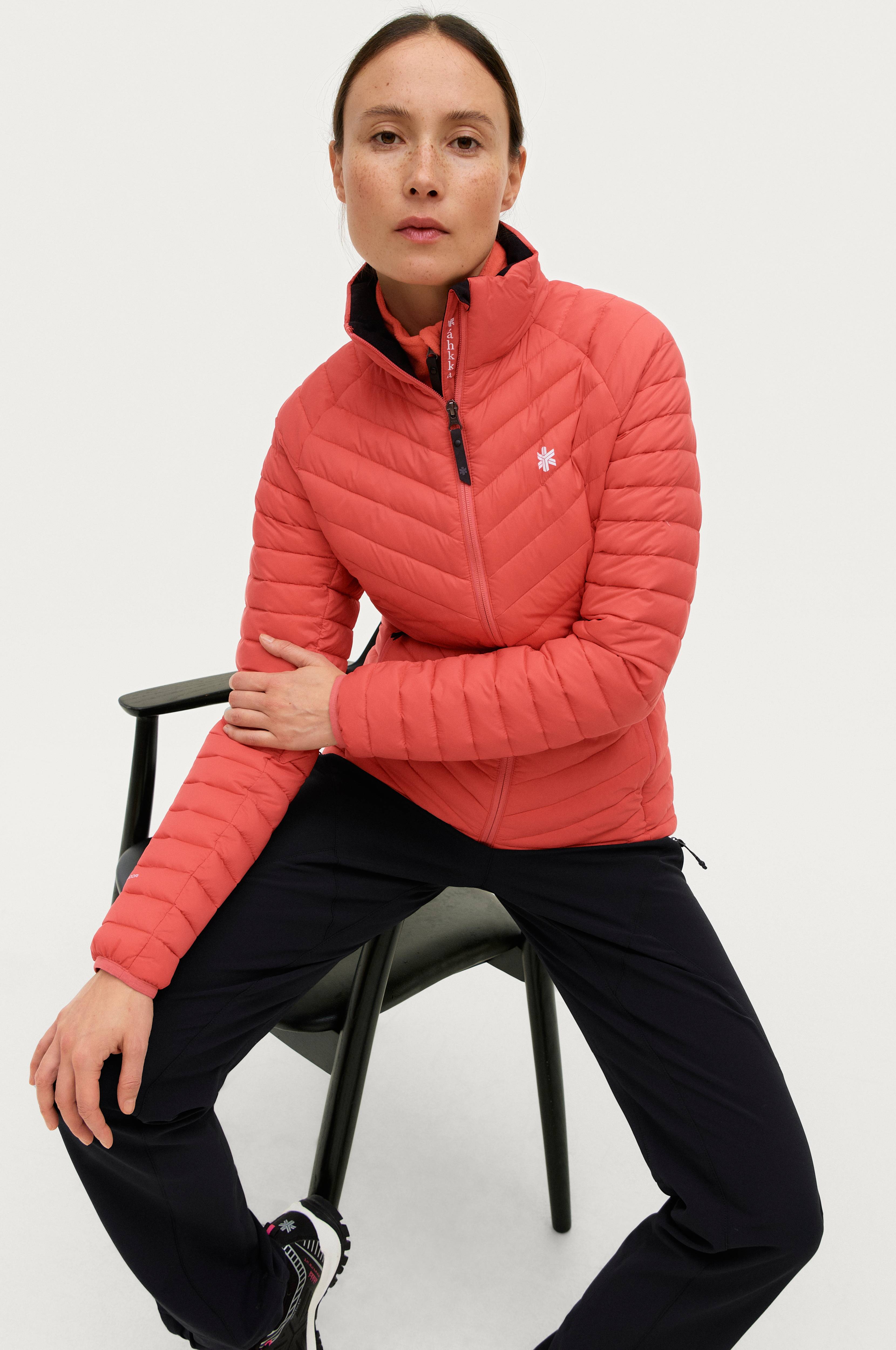 En lätt och smidig quiltad jacka från Áhkká med fyllning av en blandning av dun och syntet som gör att du får både dunets varma, lätta egenskaper och de snabbtorkande egenskaperna hos syntetmaterialet. Fill power 350. Efter tvätt torkar jackan snabbare än en ren dunjacka och det är också lättare torka utan att det blir klumpar. Jackan har två fickor med dragkedja. Hög krage med mjuk, borstad polyester på insidan. Stängning med dragkedja och elastiska bandkanter i ärmslut. Dragsko med stoppers i nederkanten. Längd bak ca 67 cm i stl 36. Áhkká använder inte dun som handplockats från levande fåglar.