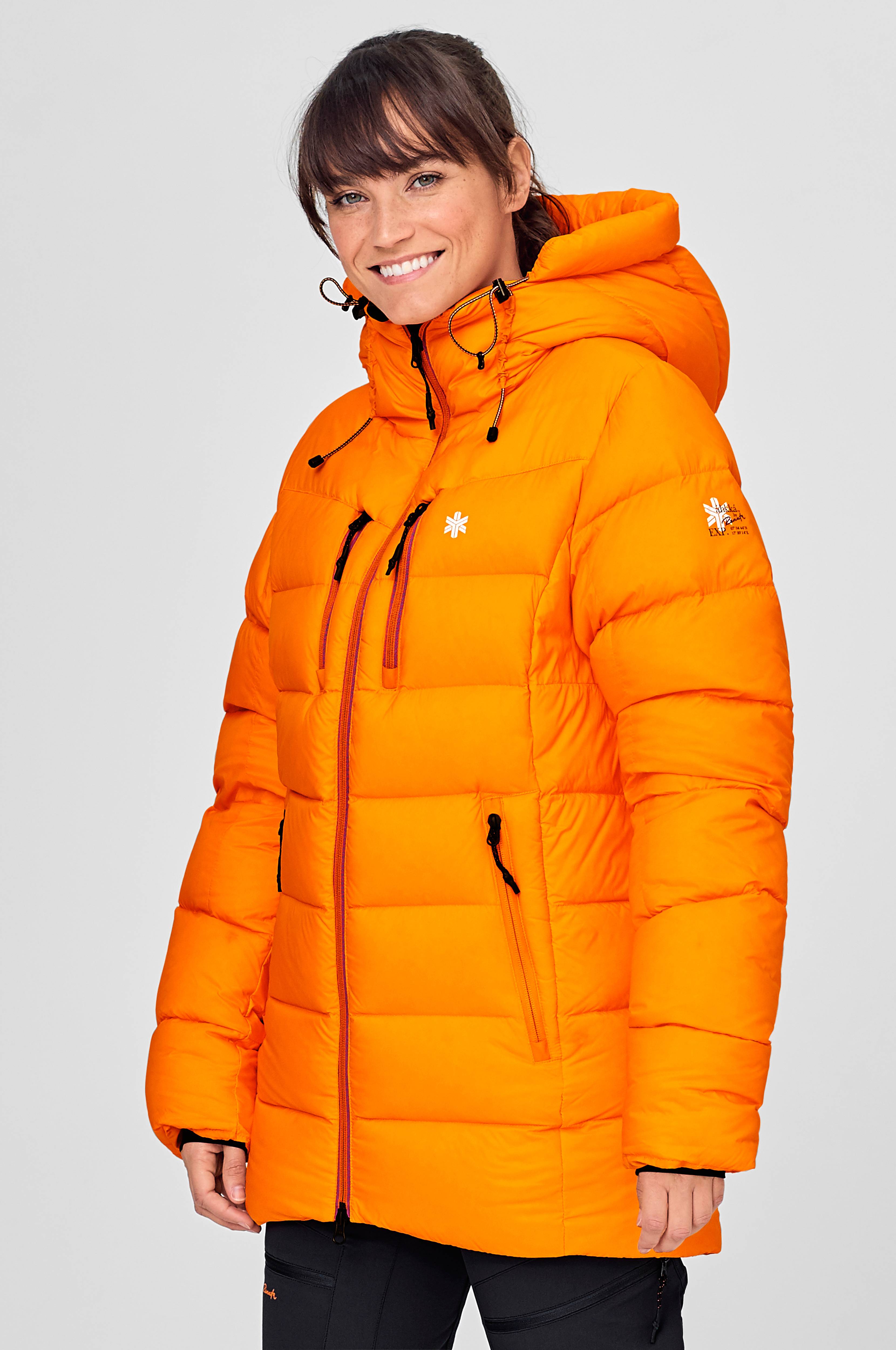 Renata Expedition2 är en packbar dunjacka som är smidig, lätt och värmande och samtidigt stor och rejäl, med snygga skärningar. Vattenavvisande. En riktig expeditionsjacka för kallare väder med dubbla förskjutna dunkanaler för att hålla värmen bättre. Axlarna har en syntetpadding, vilket gör att de står bättre emot fukt och gör att du inte förlorar värme även om du bär tungt eller har mycket i fickorna. Fast justerbar huva med dragsko. Hög krage. Tvåvägsdragkedja. Dold trikåmudd i ärmslut. Fickor i sidan och två bröstfickor, alla med vattentäta dragkedjor. Två innerfickor i mesh. Dragsko med stoppers i nederkant. Mjuk fyllning av gåsdun och fjäder med mycket bra värmeisolering. Längd bak ca 82 cm i stl 38. Packbar (packpåse medföljer). Fillpower 700.