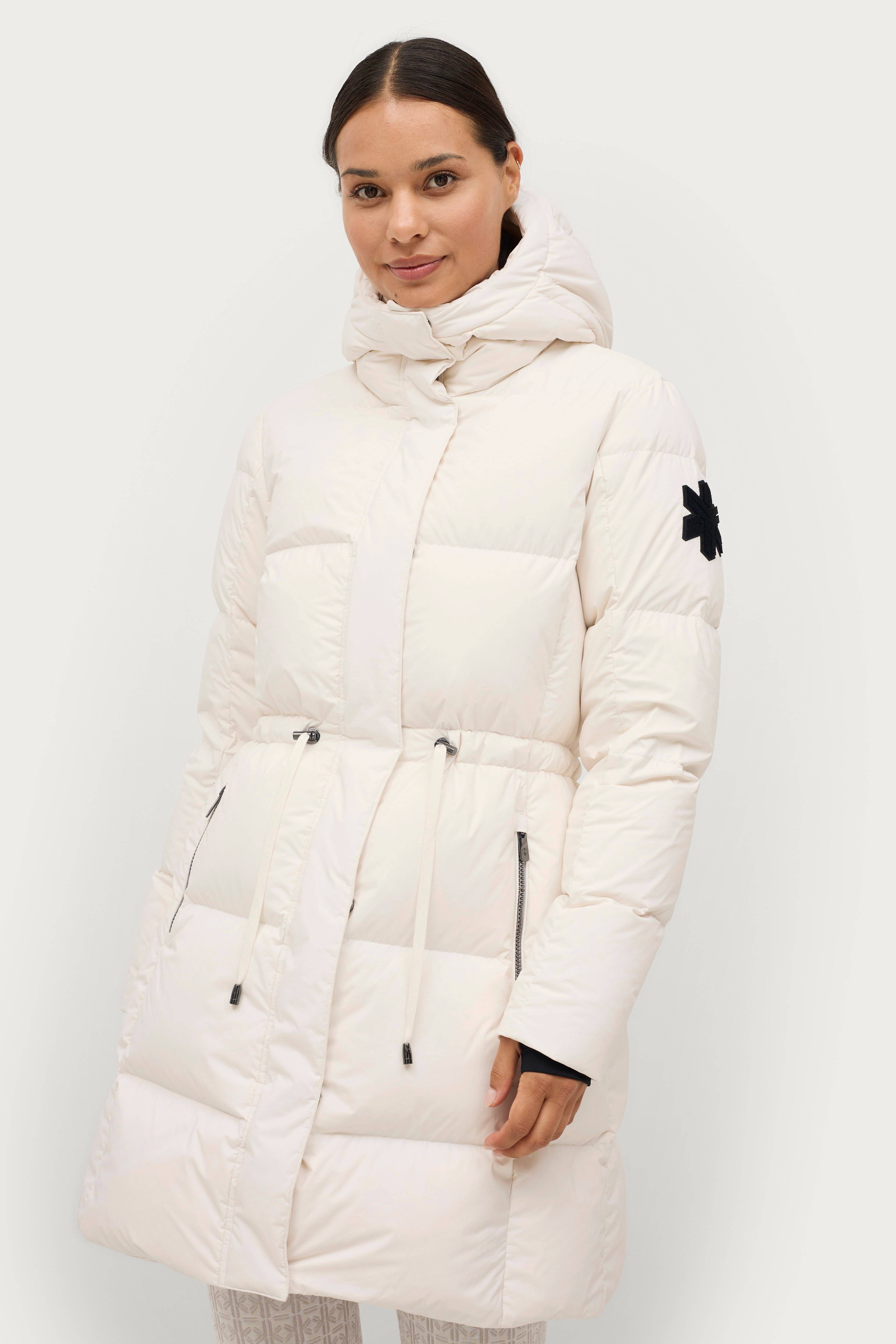 En varm, smidig och lätt kappa med fyllning av 90% dun och 10% fjäder. Fill power 700. Vind- och vattenavvisande yttertyg.