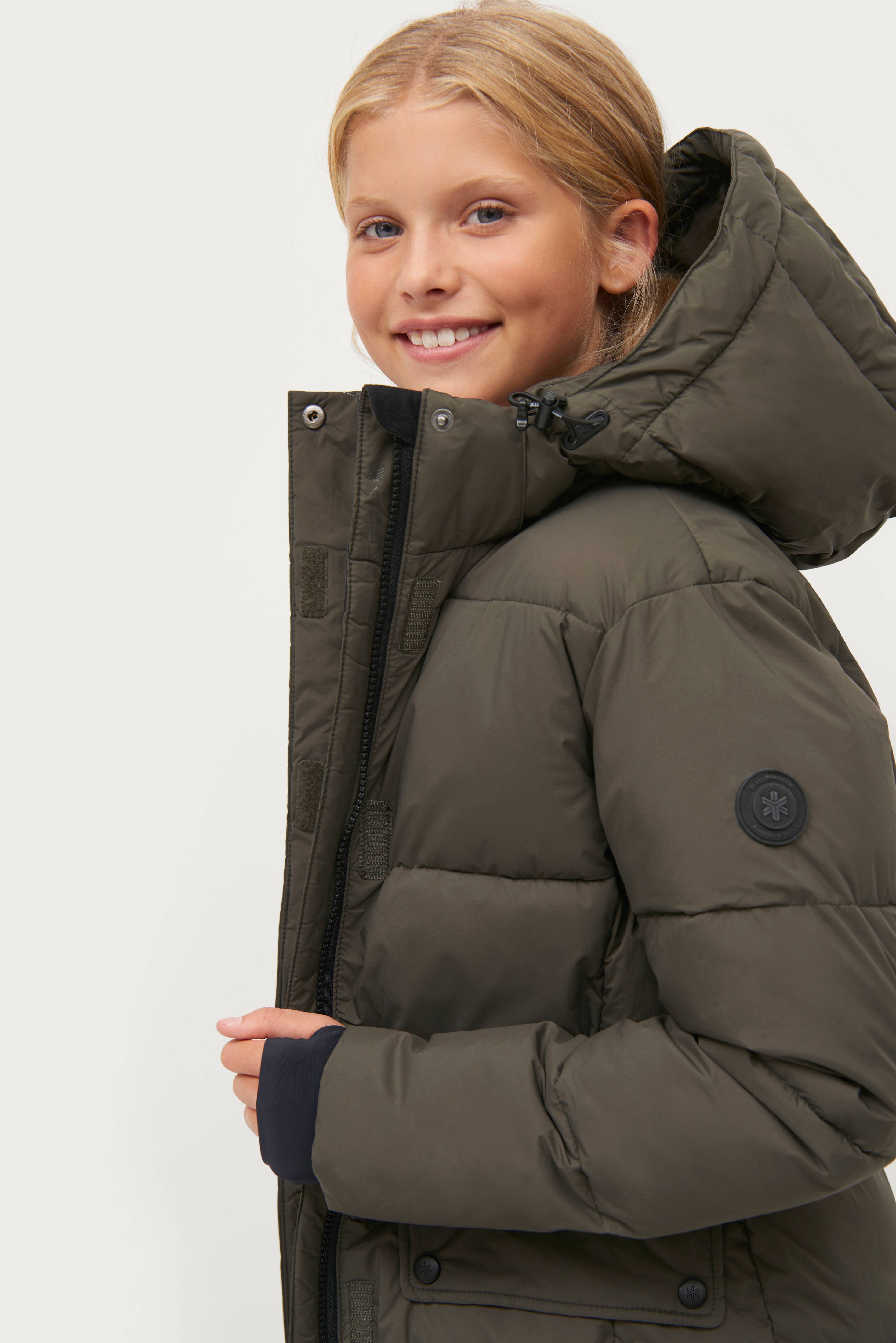 En lätt, varm och mjuk vadderad jacka med polyesterfyllning. Yttertyg med matt yta och en lite krispig, krinklad känsla. Blankt foder med logga ton-i-ton.