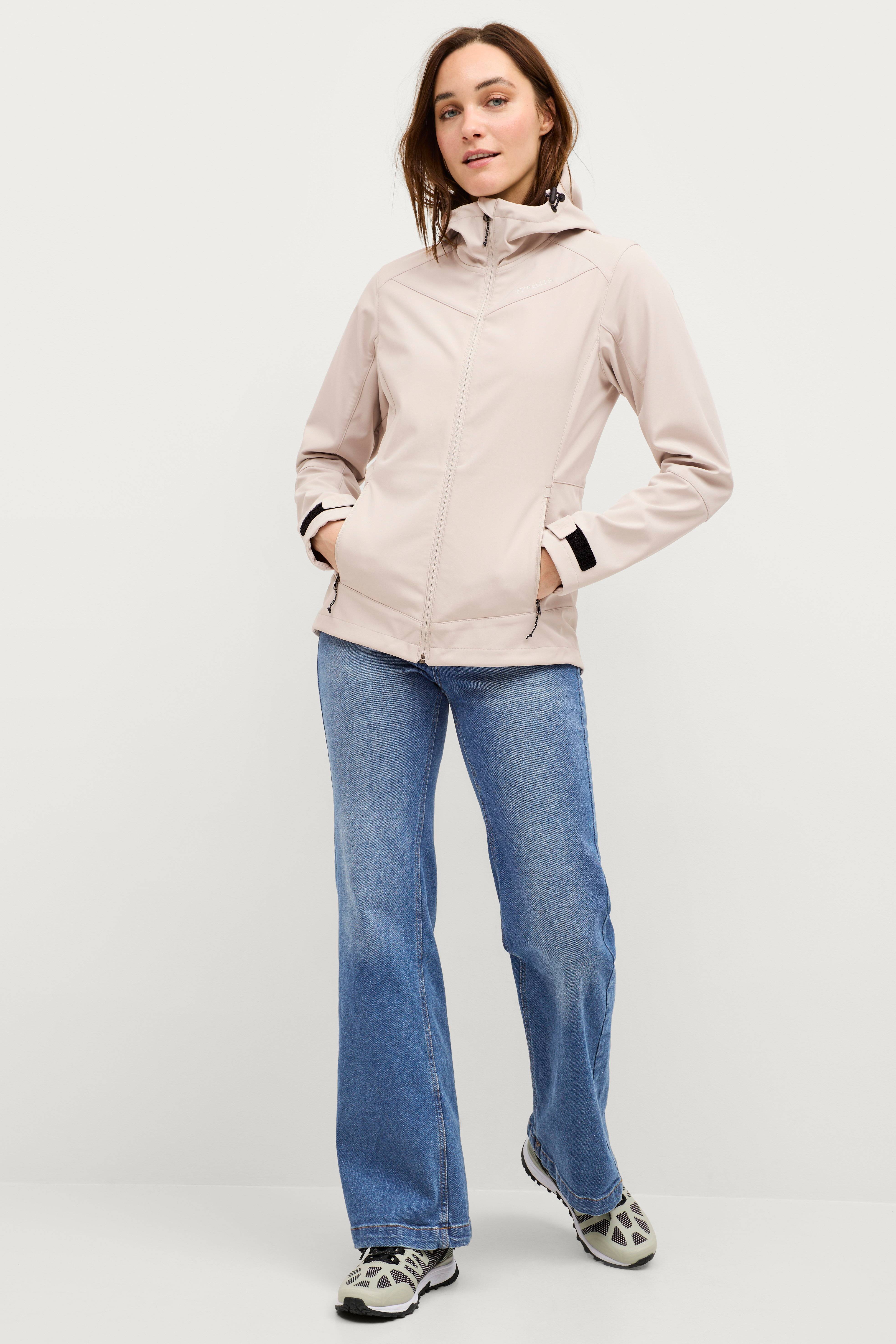 • Funktionell, praktisk softshelljacka med insida i fleece • Vattenavvisande, vindavvisande yttertyg • Fyrvägsstretch • Fast huva med dragsko • Hög krage med insida i fleece vid hakan • Stängning med dragkedja • Två fickor med dragkedja • Justerbara ärmslut • Dragsko i nederkanten • Längd: 71 cm i storlek 36 • Produkten är impregnerad med Rudolf Bionic Finish Eco, en vattenavvisande behandling som är fri från tillsatta perfluorerade ämnen (PFC). Du kan behöva återaktivera impregneringen om vattnet på ytan slutar pärla sig. Detta gör du genom att tillsätta värme på låg temperatur genom t.ex. strykning eller torktumling. Vid behov kan även impregneringspreparat behövas.