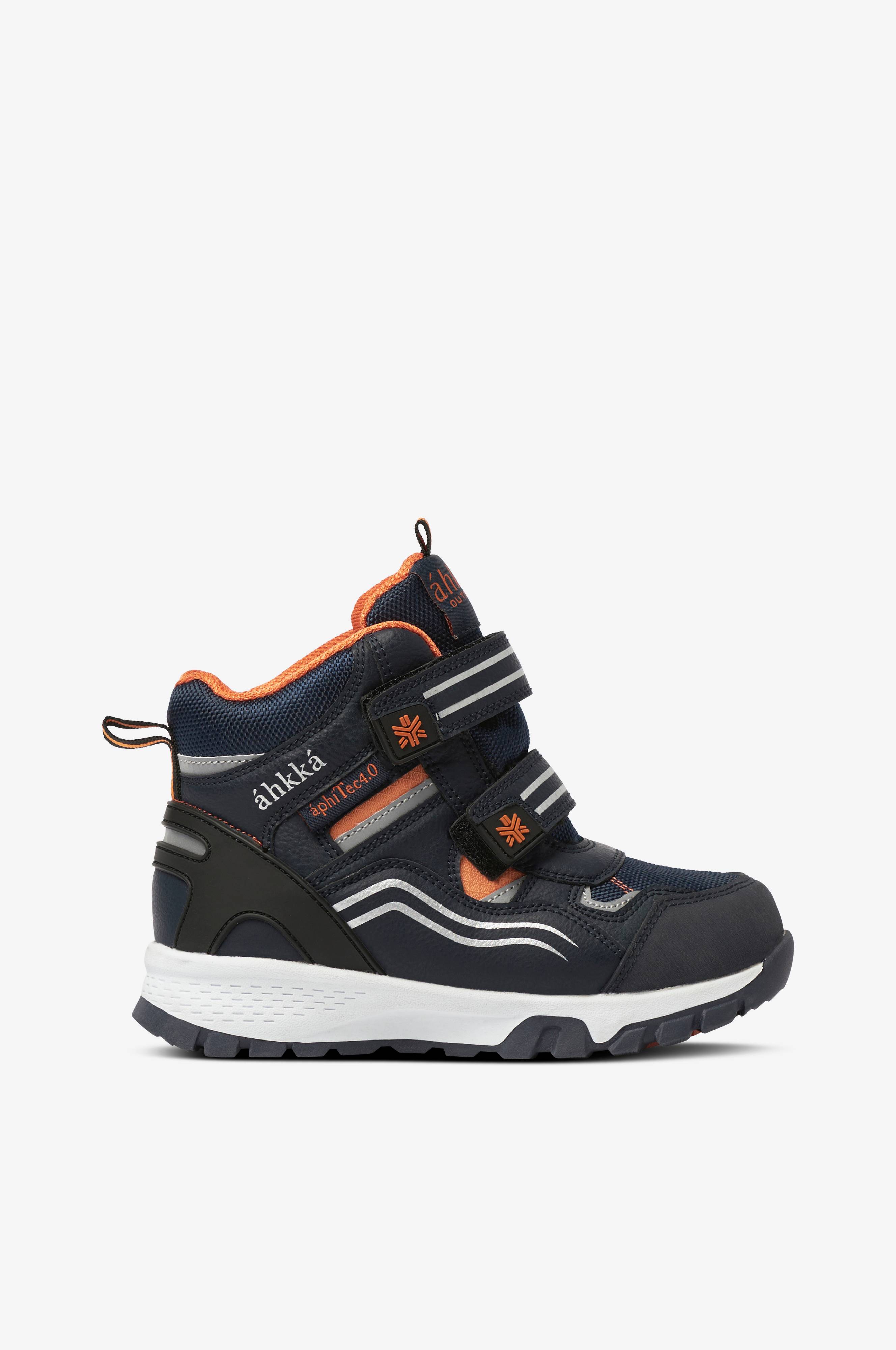 Varmfodrade och vattentäta kängor i sportig modell. Insida med mjuk, värmande fleece, samt uttagbar, mjukstoppad innersula. Två justerbara kardborreremmar för perfekt passform. Plös och skaftkant är bekvämt vadderade. Grovmönstrad yttersula för bra grepp på olika underlag. Reflexdetaljer.