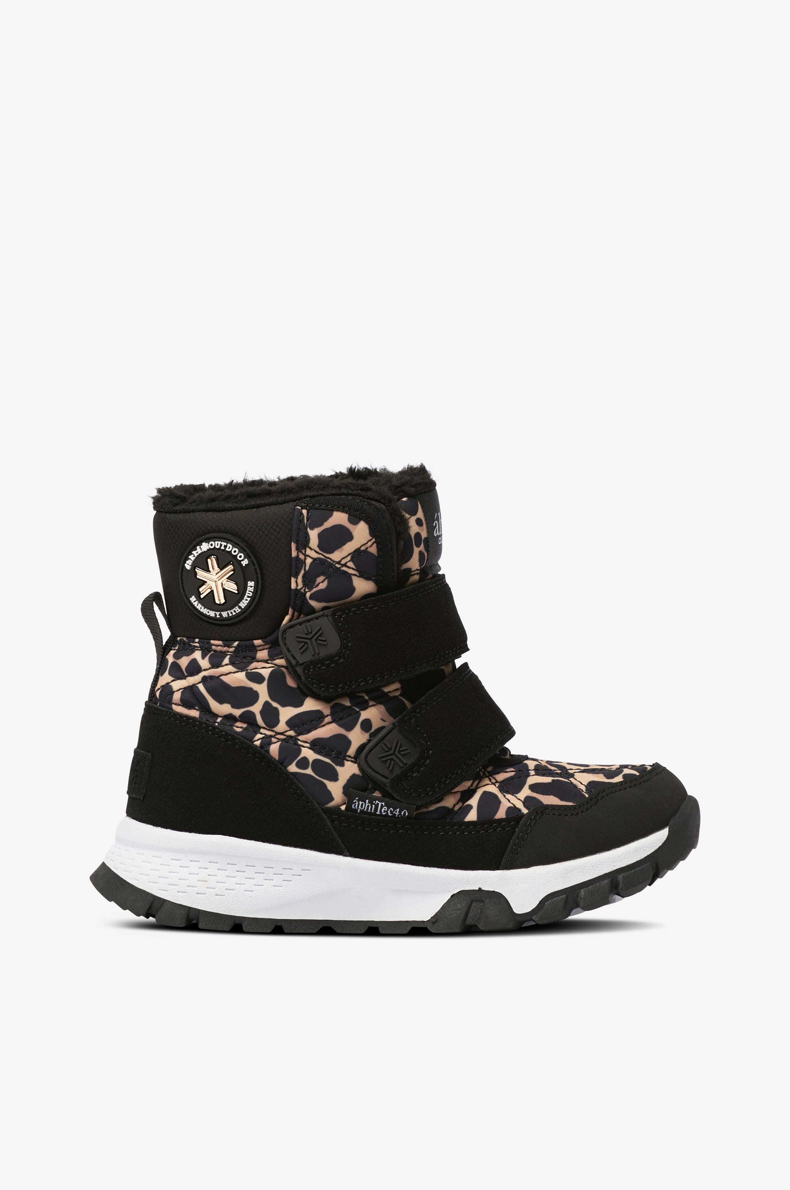Varmfodrade och vattentäta kängor med breda kardborreremmar för smidig påtagning. Ovandel i slitstark textil med quiltat mönster och partier i skinnimitation. Mjuk och värmande insida i fuskpäls. Greppsäker yttersula och draghälla bak. Membranet apiTec 4.0 gör produkten vattentät samtidigt som den andas och transporterar bort fukt.