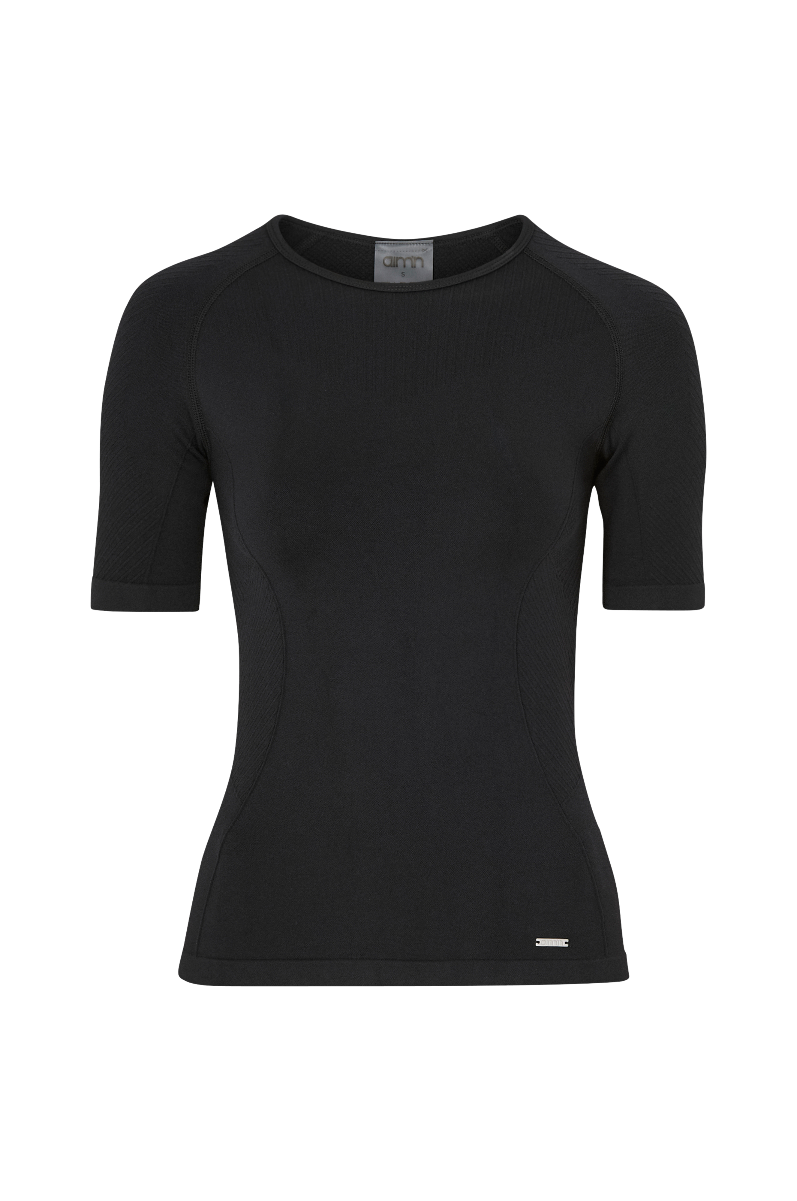 Kortärmad topp i sömlöst tyg med detaljer i Ribbed & Luxe-struktur. Rund halsringning. Fyrvägsstretch.