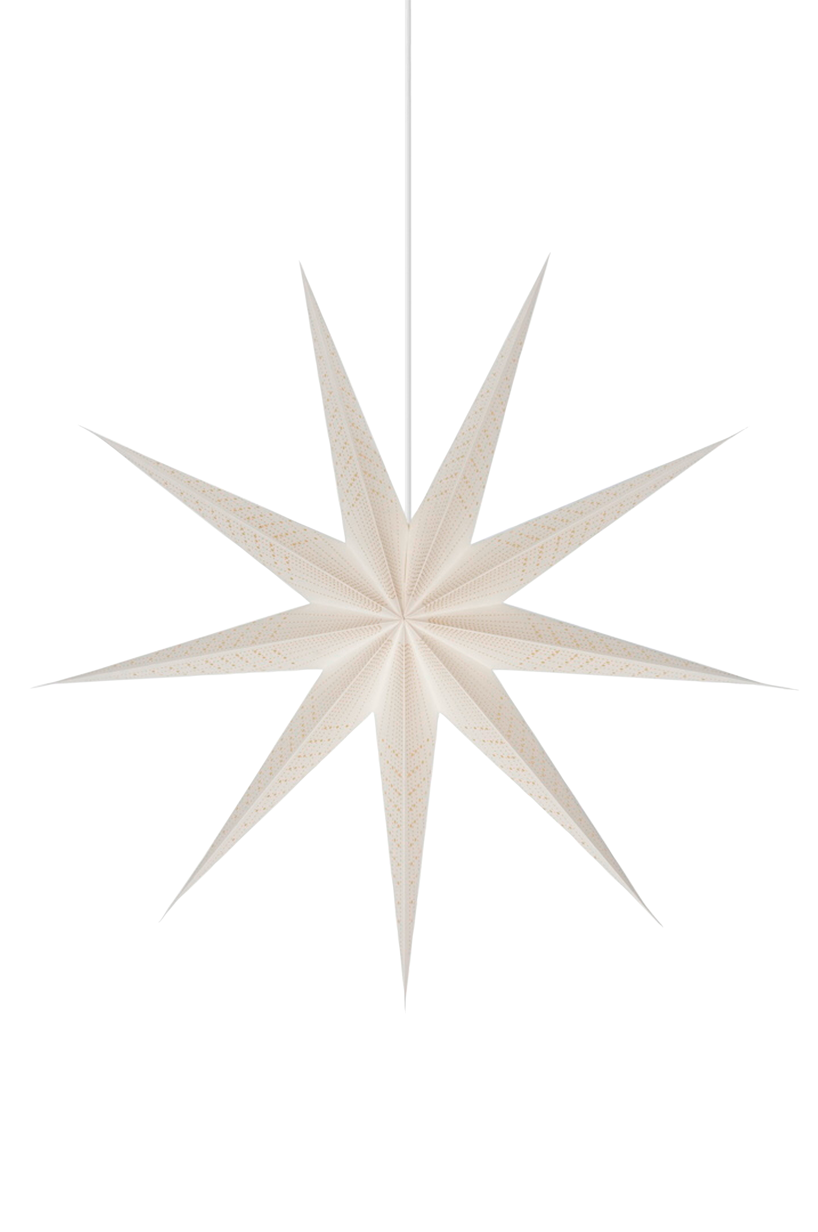 En klassisk vit kartongstjärna i smal modell, handvikad av skickliga hantverkare och med ett vackert hålmönster, som sprider en trevlig julstämning i hela rummet. Använd endast med LED-lampa. Sladdset / takkupphäng och ljuskälla ingår ej.