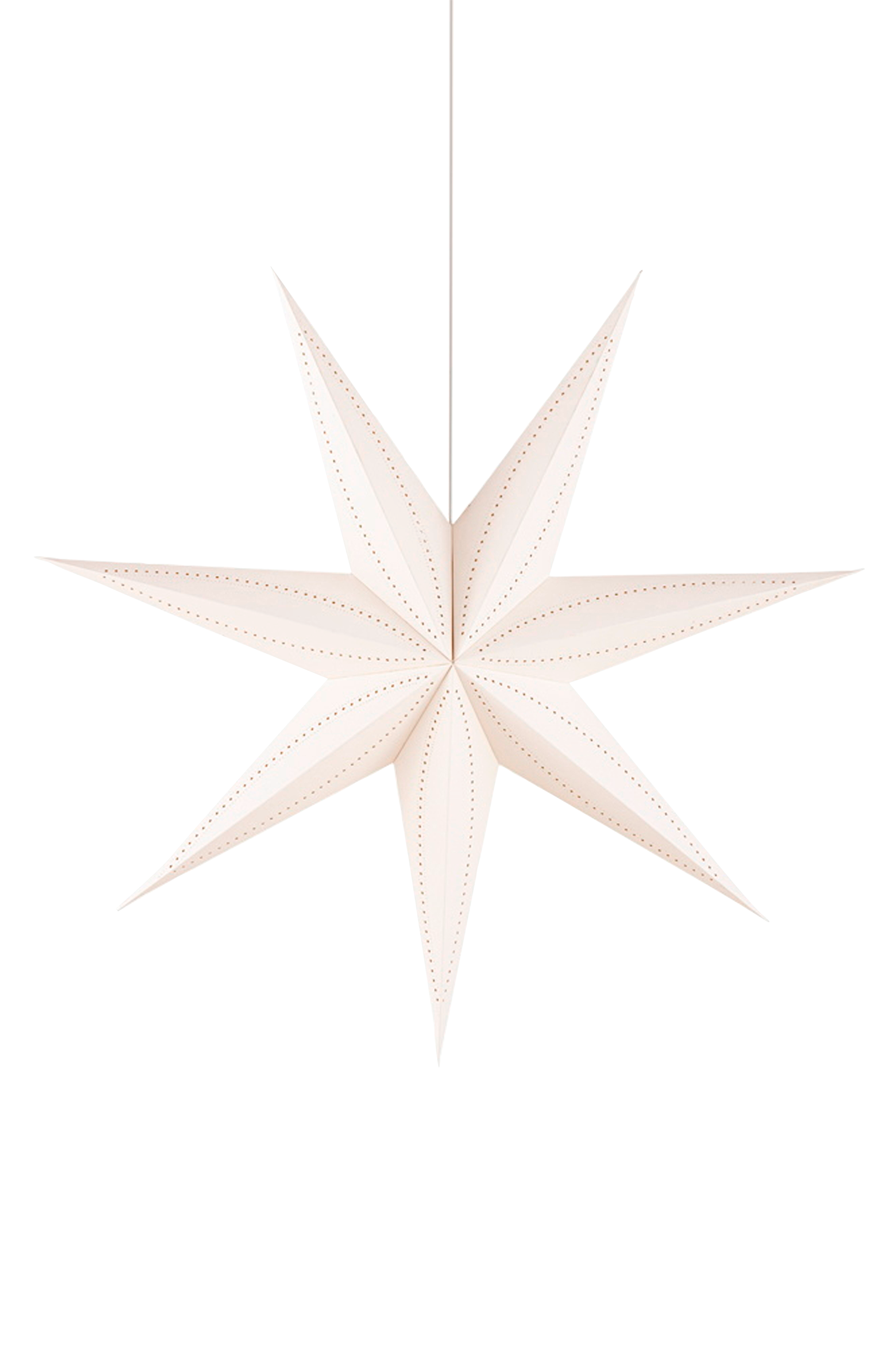 En handgjord kartongstjärna med ett vackert hålmönster. Mönstret påminner om öglesöm. Det enkla bågformade mönstret ger ett vackert sken. Modellen Henriett finns i olika storlekar och färger. Använd endast LED-lampor i kartongstjärnor. Sladdset / takkupphäng och ljuskälla ingår ej.