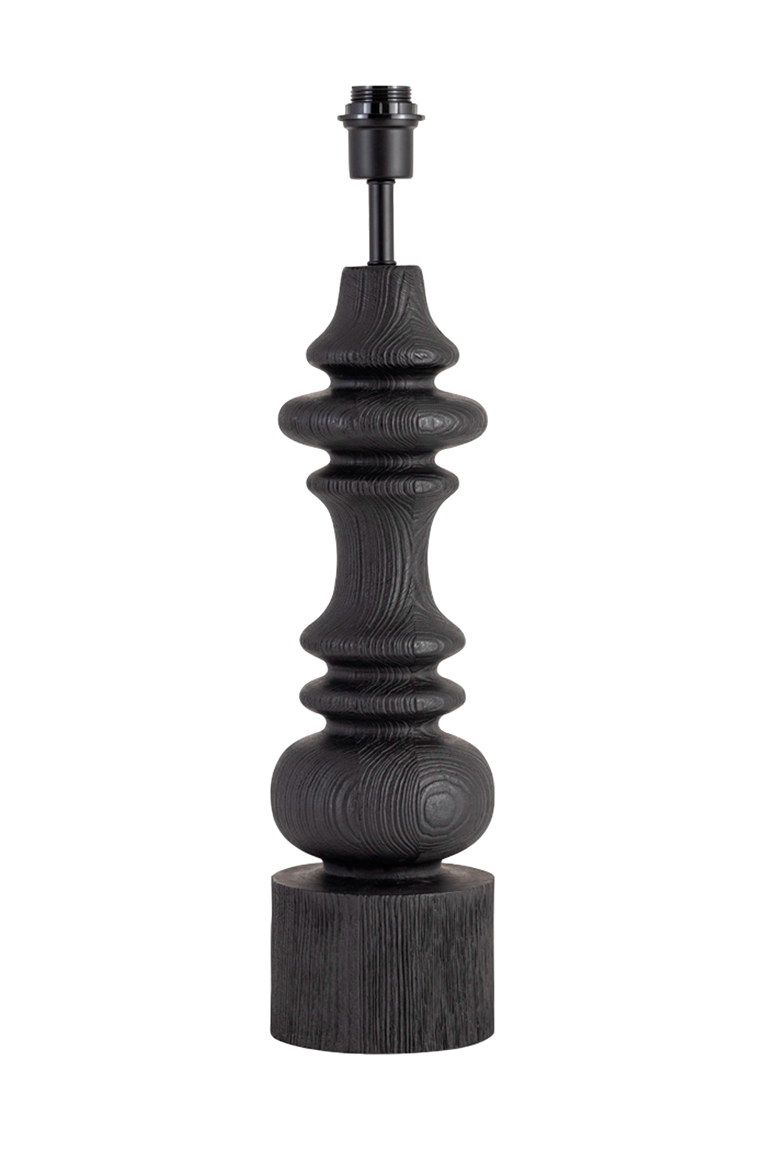 Bordslampfot i massiv furu. Den blästrade ytan är svartbetsad för att framhäva ådringen på bästa sätt. Kan kombineras med både mindre och större lampskärmar efter eget tycke.