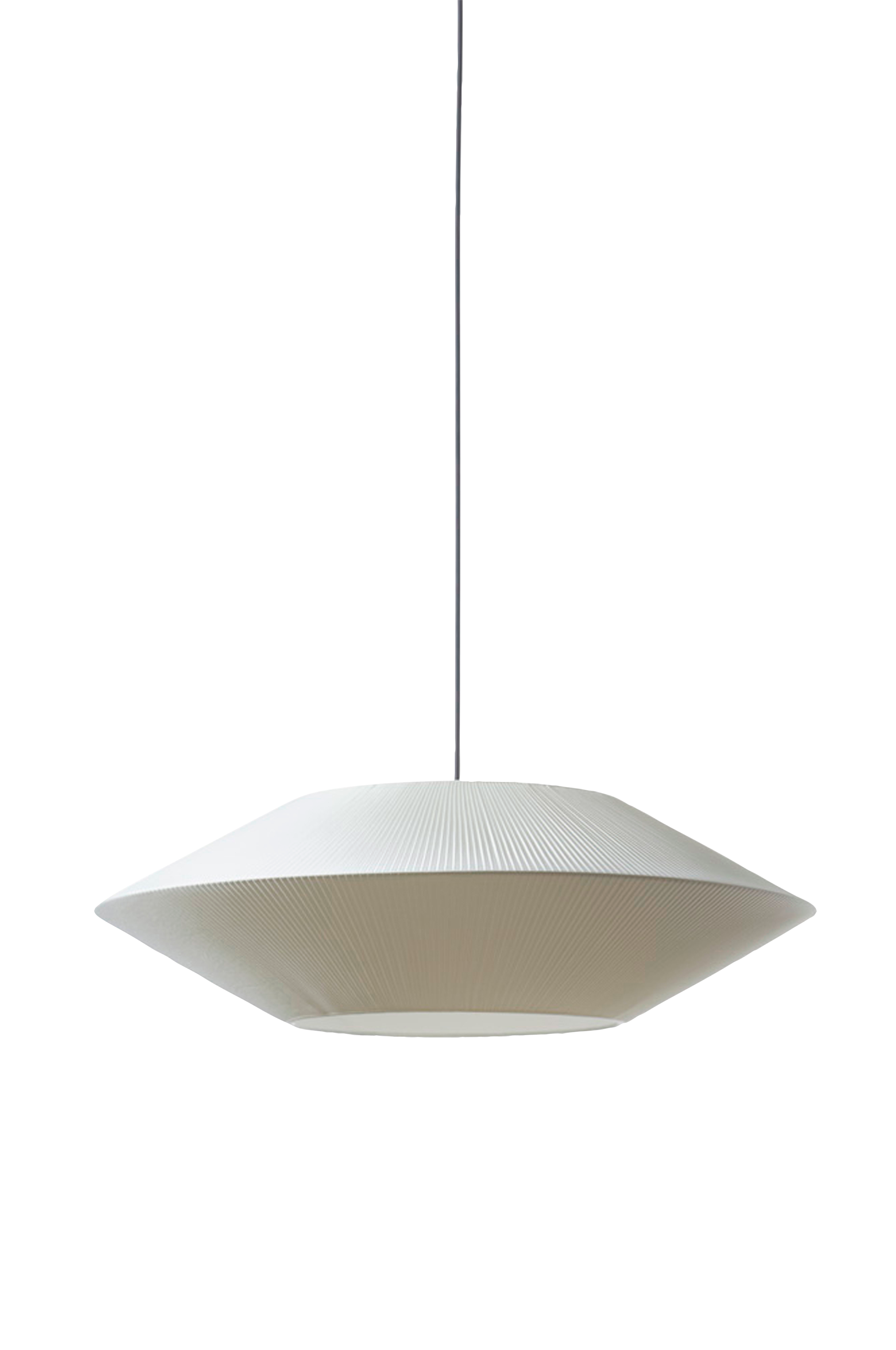 En elegant och modern taklampskärm som kan kombineras med en av våra många takupphängningar. Tyget på skärmen är fint och jämnt veckat över hela skärmen. Det här är en lampskärm som passar i flera olika rum, men den är perfekt att sätta över ett matbord. Den ger bra avbländning men sprider samtidigt mycket ljus över bordsytan tack vare sin stora öppning nedåt. Sladd/upphängning ingår ej och kan kompletteras med takupphäng 2249813 från Alde & Lind som finns i flera färger.