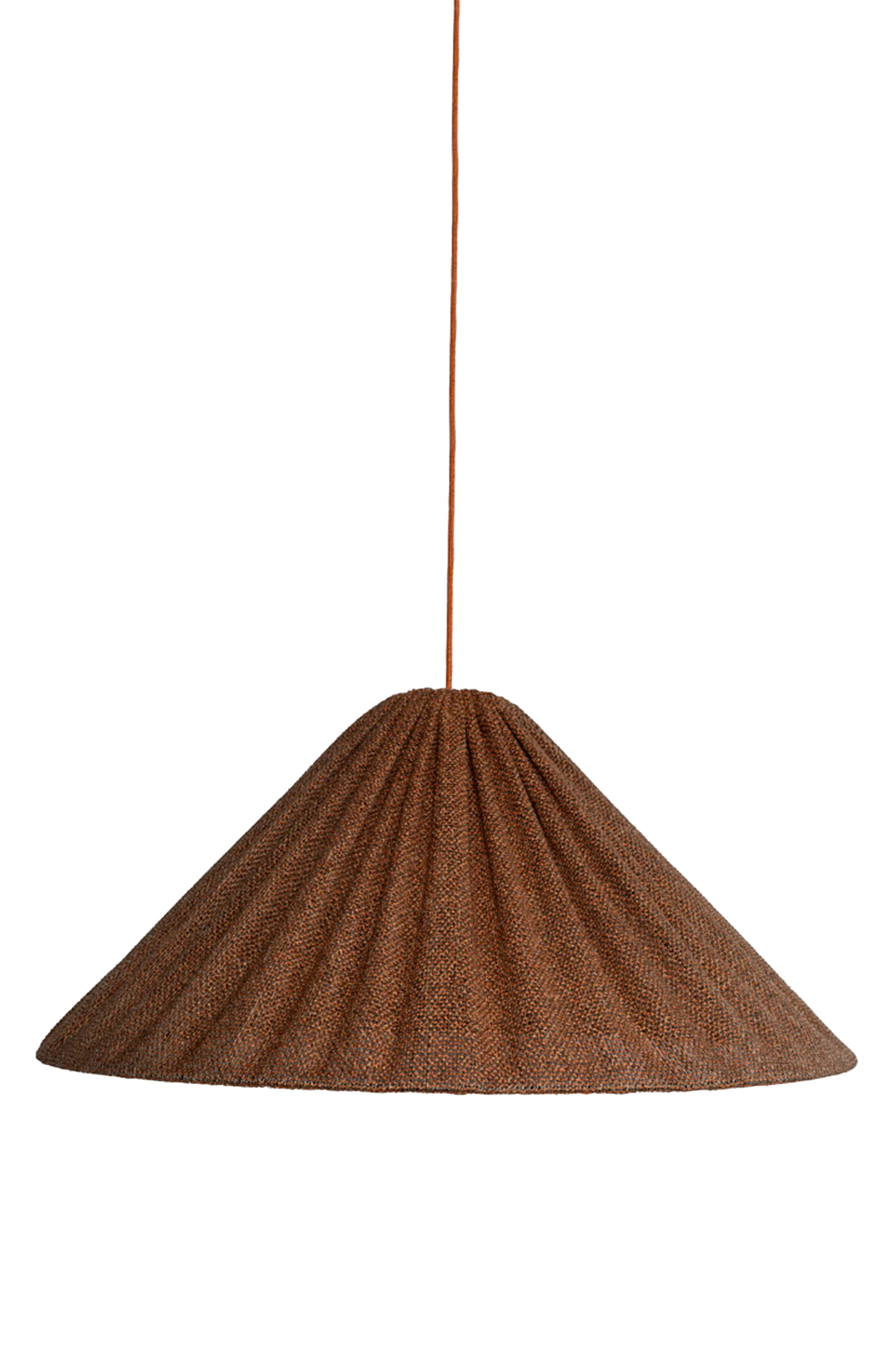 En voluminös konformad taklampa som passar som taklampa över ett matbord eller soffbord. Tyget är melerat i två färgtoner. Trots att det är ett tjockare tyg har det en bra ljusgenomsläpplighet. Metallramen är svartlackerad. Sladd/upphängning ingår ej och kan kompletteras med takplugg 2249813 från Alde & Lind som finns i flera färger.