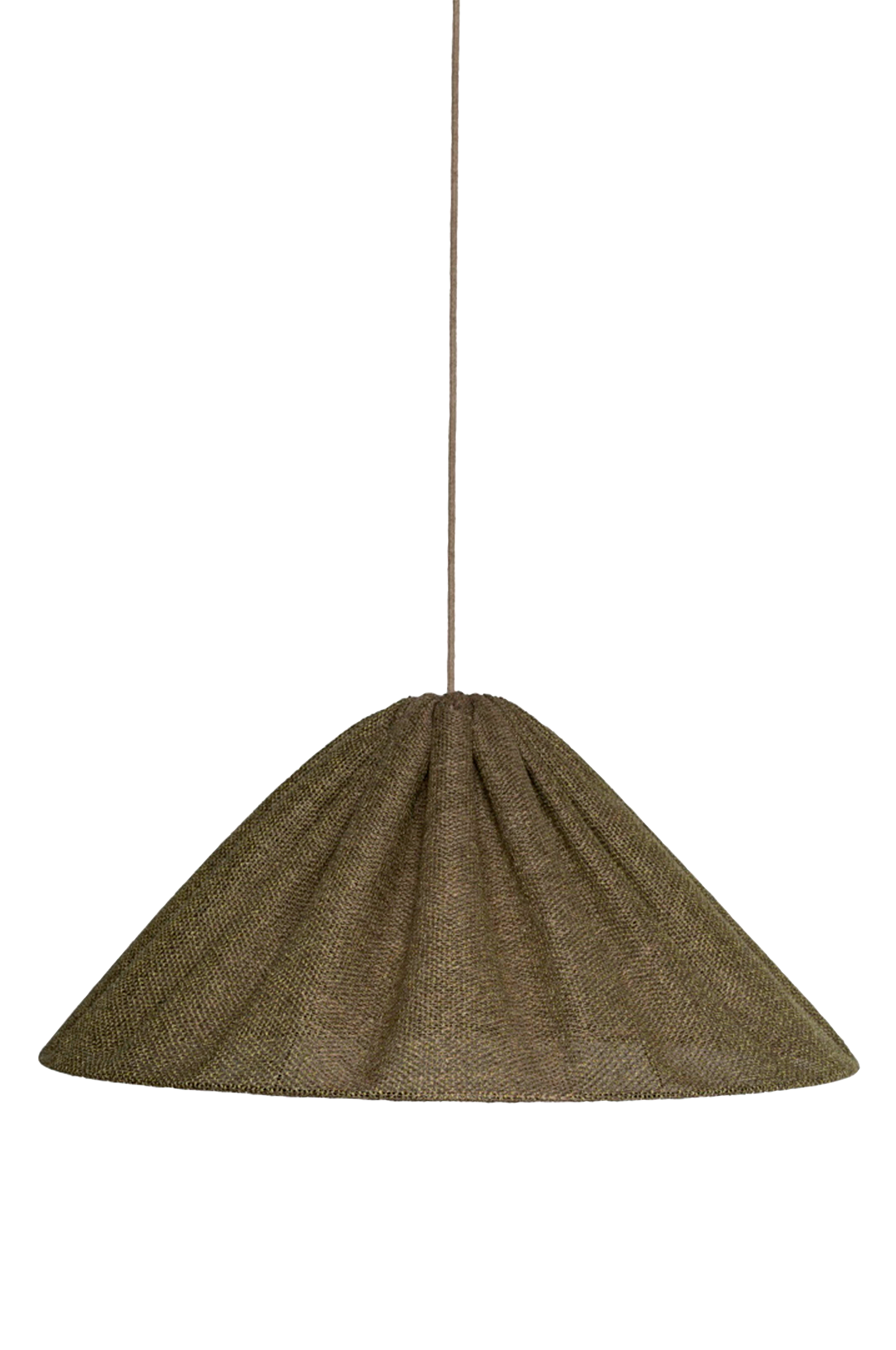En voluminös konformad taklampa som passar som taklampa över ett matbord eller soffbord. Tyget är melerat i två färgtoner. Trots att det är ett tjockare tyg har det en bra ljusgenomsläpplighet. Metallramen är svartlackerad. Sladd/upphängning ingår ej och kan kompletteras med takplugg 2249813 från Alde & Lind som finns i flera färger.