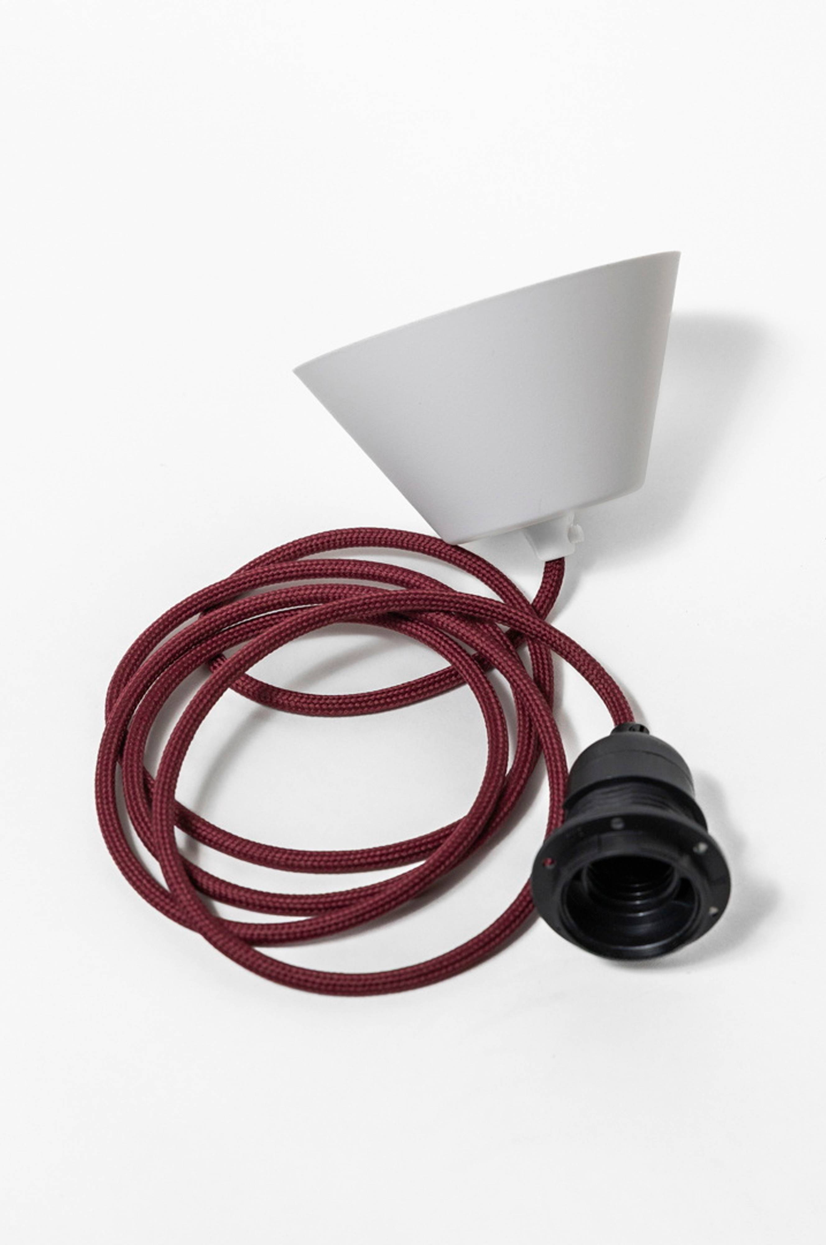 En takupphängning med textilklädd sladd, utformad för att passa våra taklampskärmar med e27-fäste.