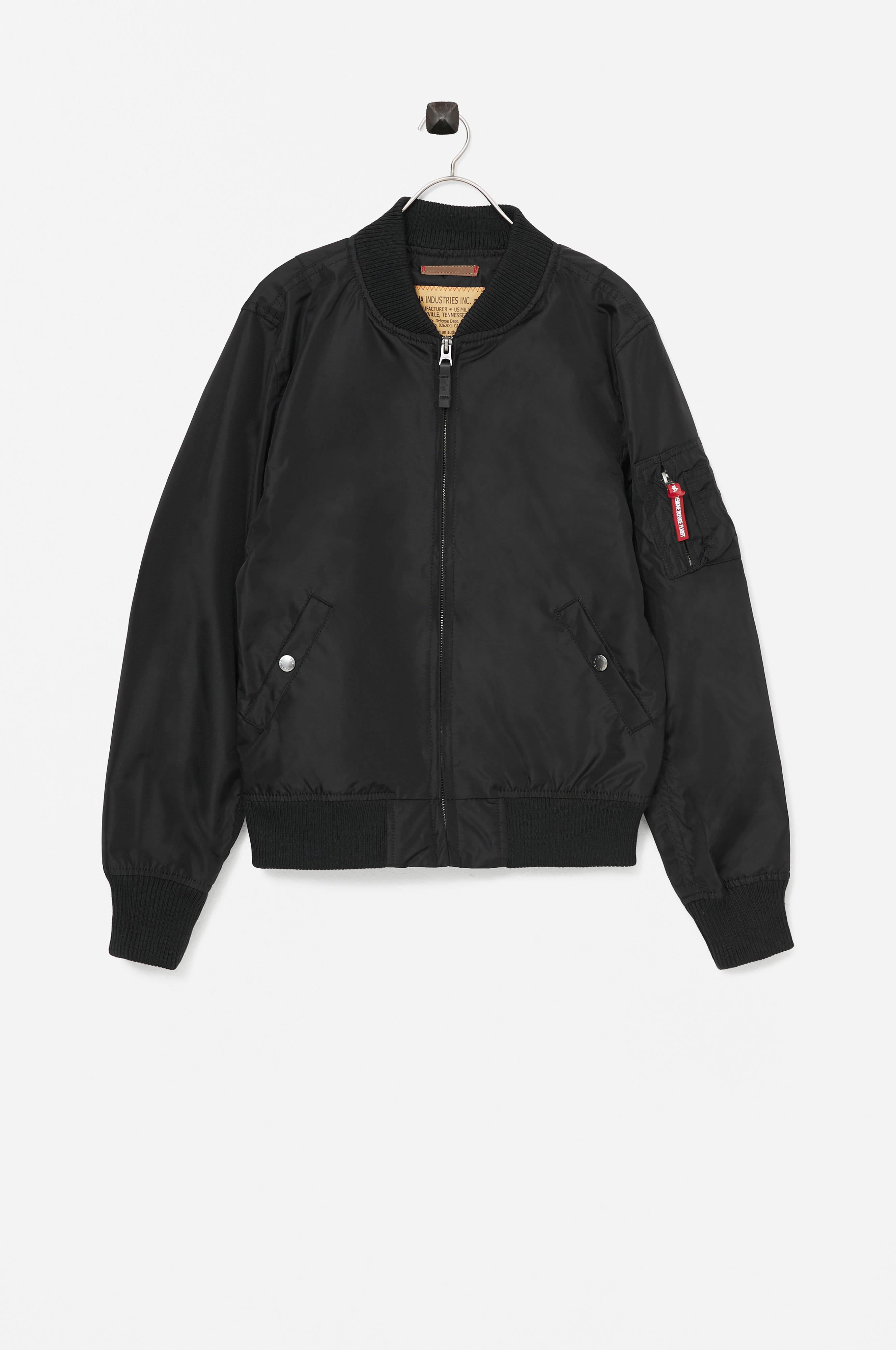 Bomberjacka i vävd nylonkvalitet. Klassisk bombermodell med ribbad krage, dragkedja och ribbade muddar i ärmsluten och nedtill. Två fickor med tryckknapp och en ficka på vänster ärm med dragkedja. Två innerfickor med kardborrestängning.