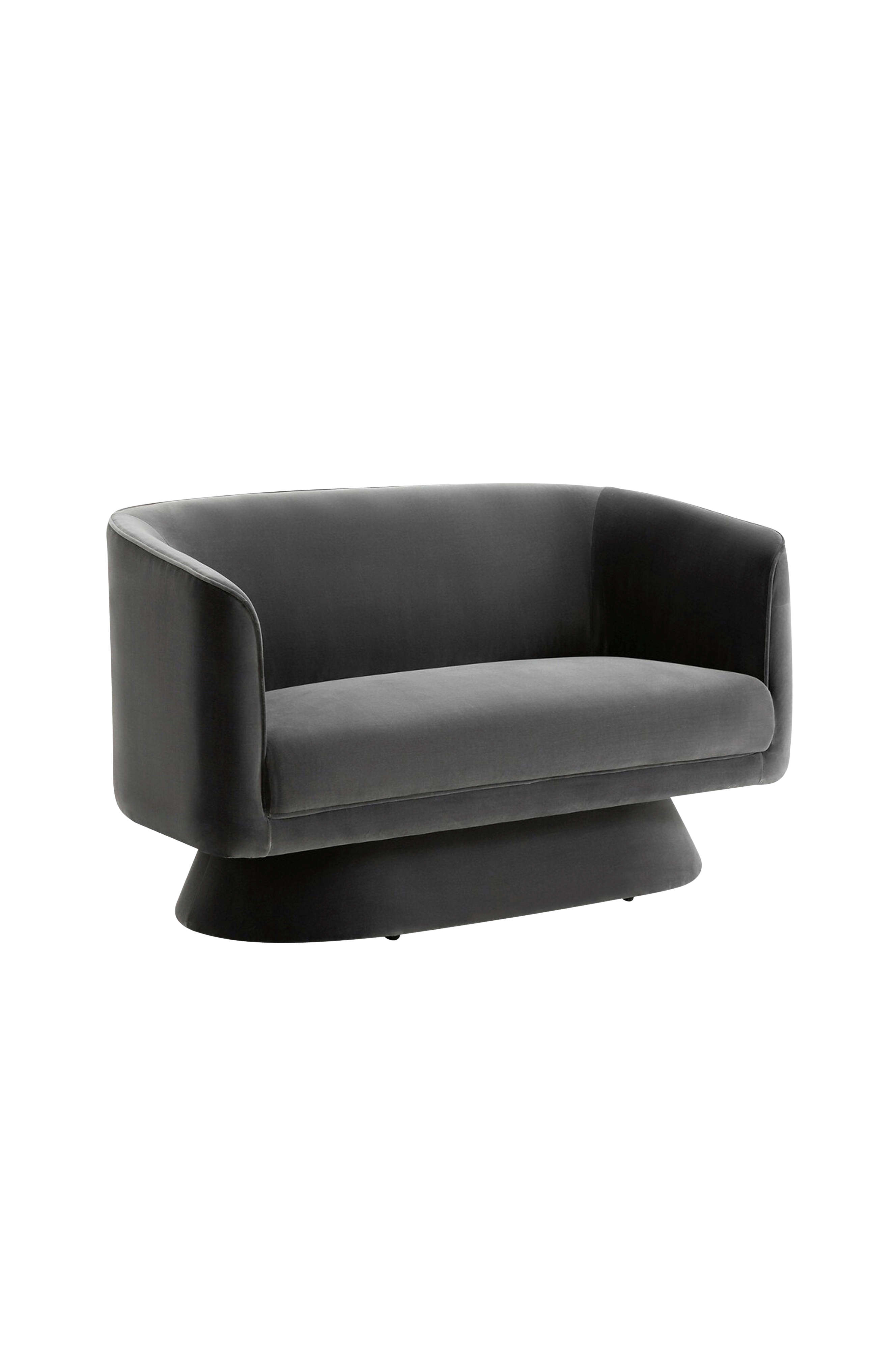 Austin minisoffa i sammet med omslutande form rundad sits bjuder in till avslappnande stunder.