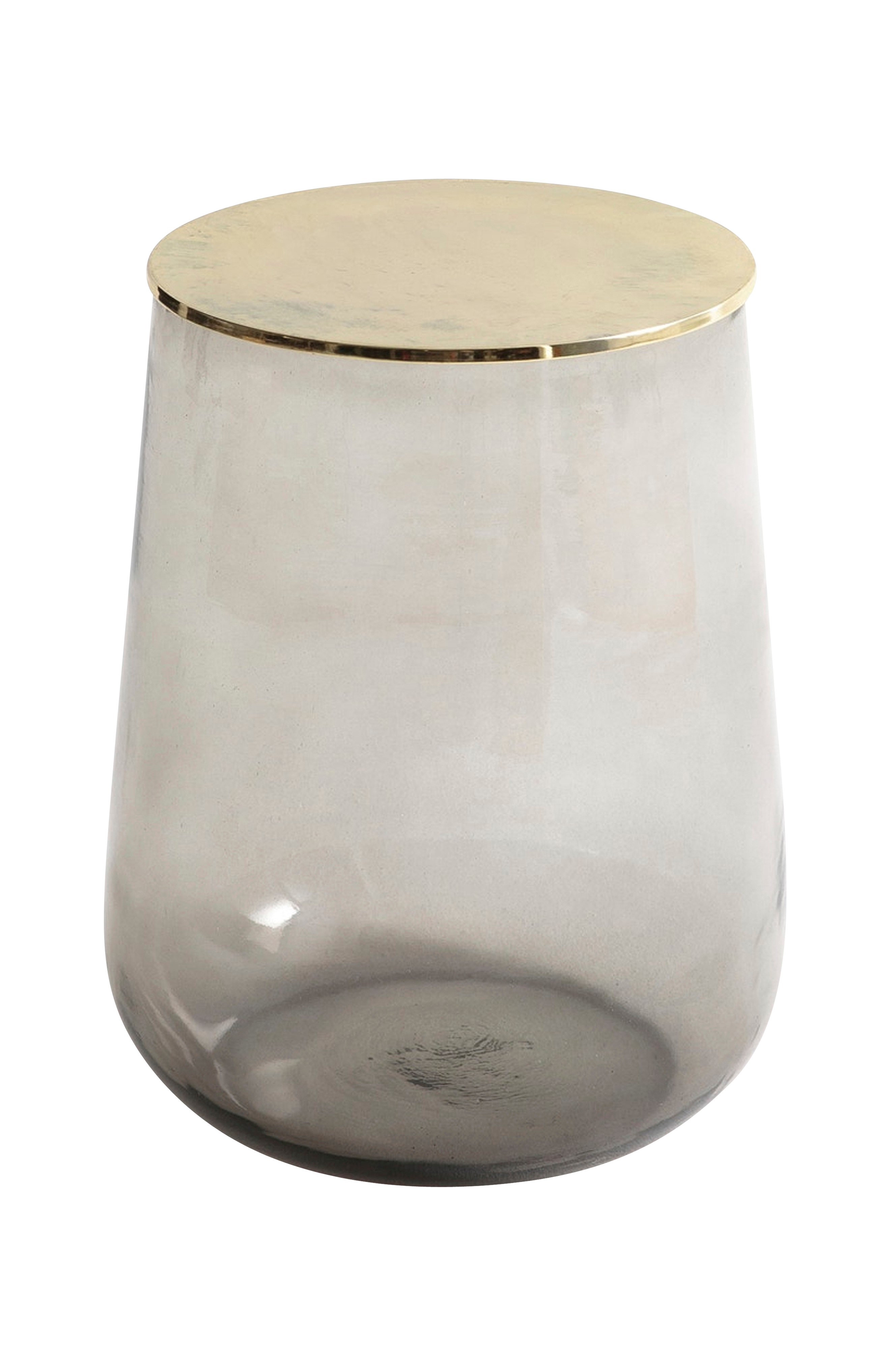 Med lätt och luftig design ger den vardagsrummet en färgklick. Den placeras antingen med metallskivan eller glaset upp, och kan även användas som sängbord. Hantverksmässig tillverkning med munblåst glas, varje produkt är unik.