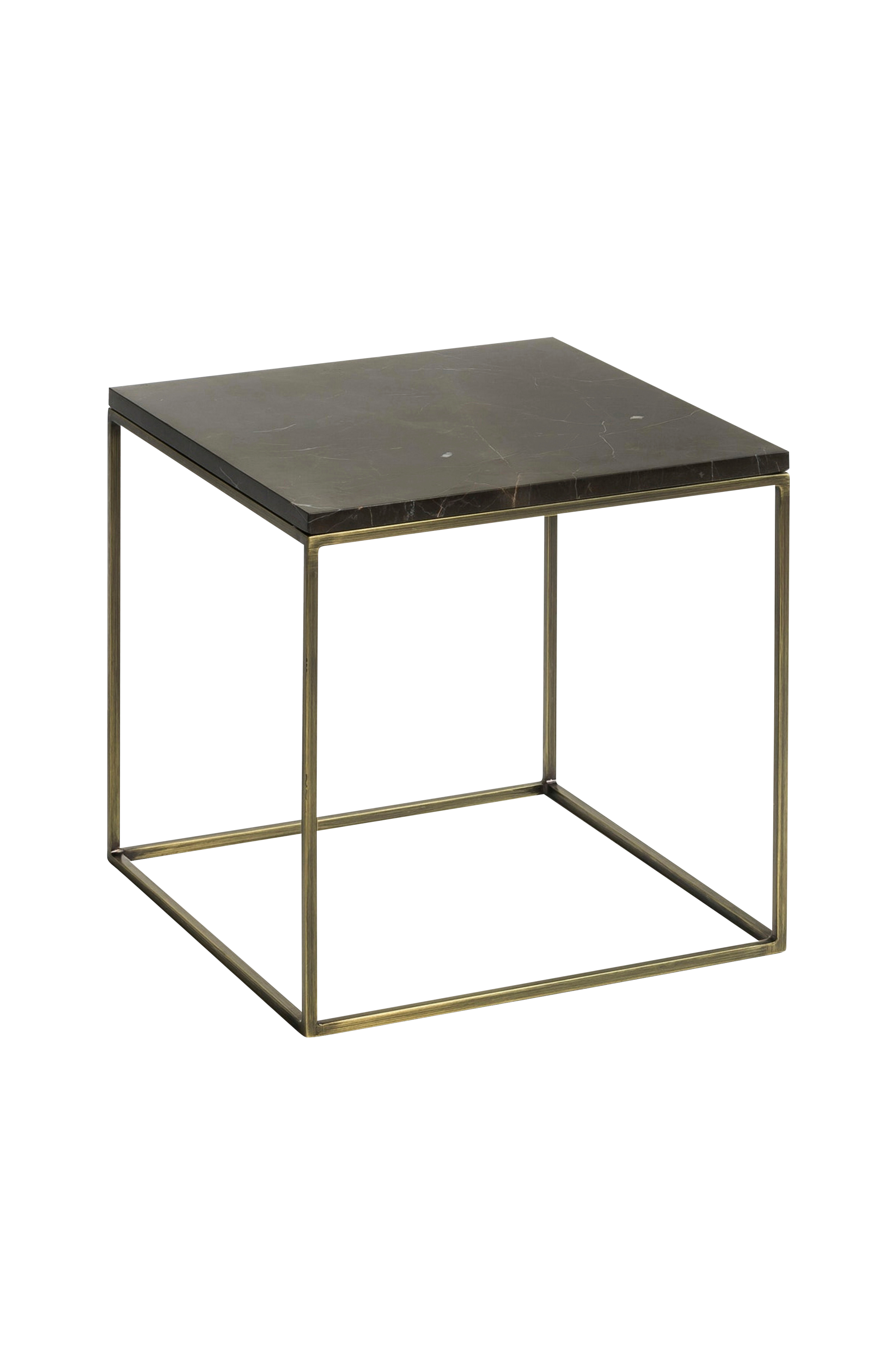 Stilren elegans kombineras med en marmorskiva, detta ädla, lena och tåliga material, och en tunn stomme av mässing med patinerad yta.