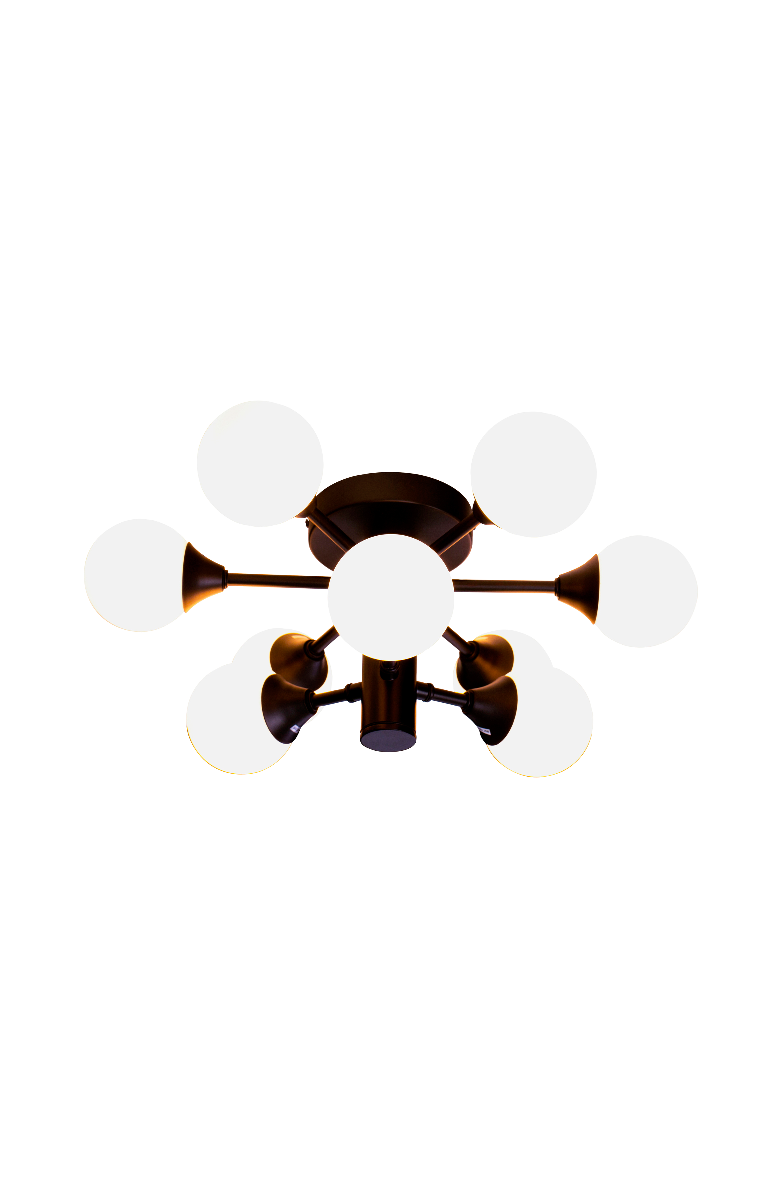 Cosmos är en unik badrumsplafond som ger ett behagligt och jämnt ljus. Lampan har nio opalvita glaskupor som sitter på två nivåer, vilket skapar en intressant och ovanlig design. Lampan ger en stilren och modern känsla till ditt badrum.