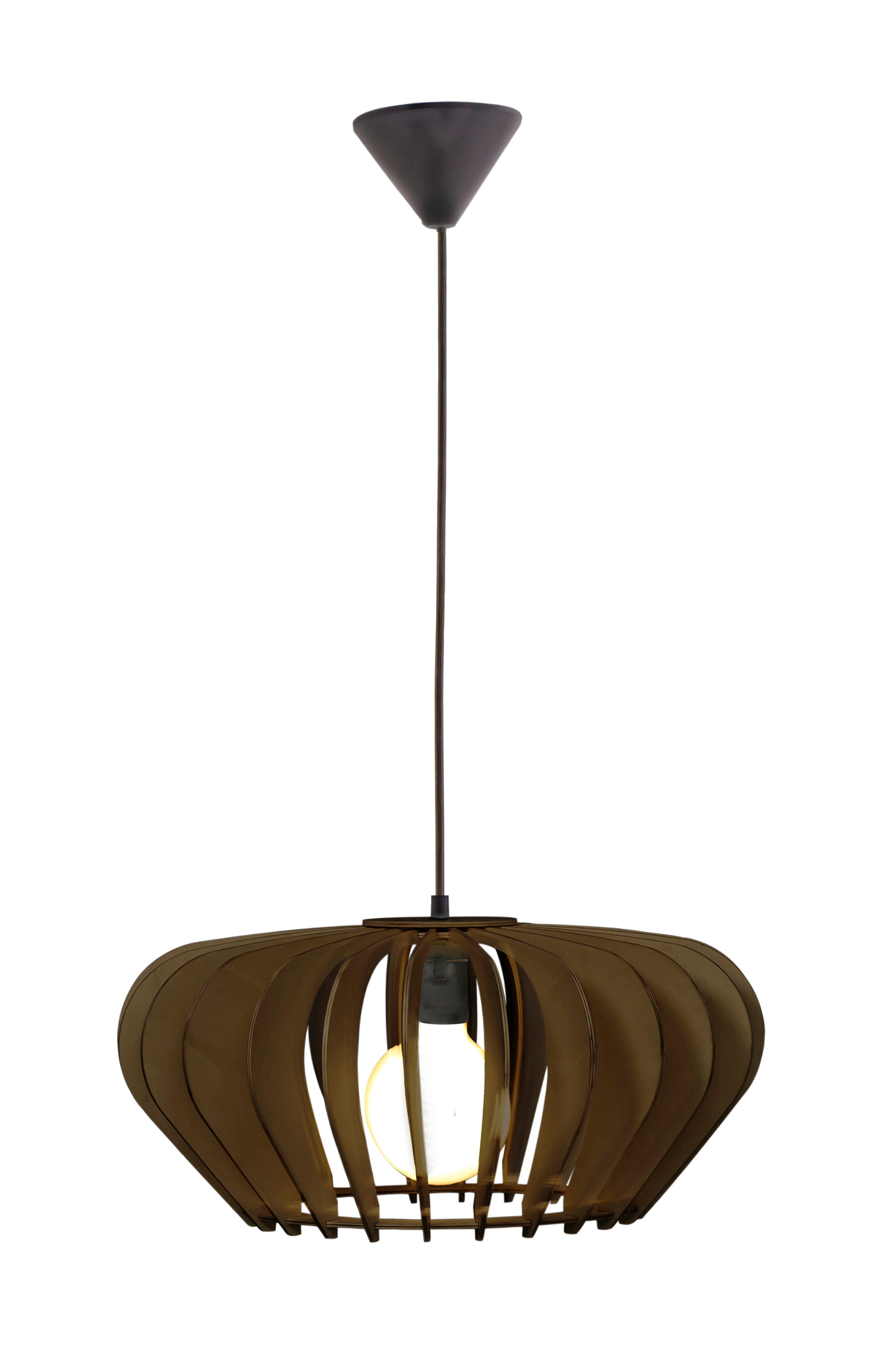 Den eleganta taklampan calyps är tillverkad av välvda träribbor som skapar en vacker ljus- och skuggeffekt. Den passar lika bra över köksbordet som i vardagsrummet där man vill ha ett bra allmänljus.