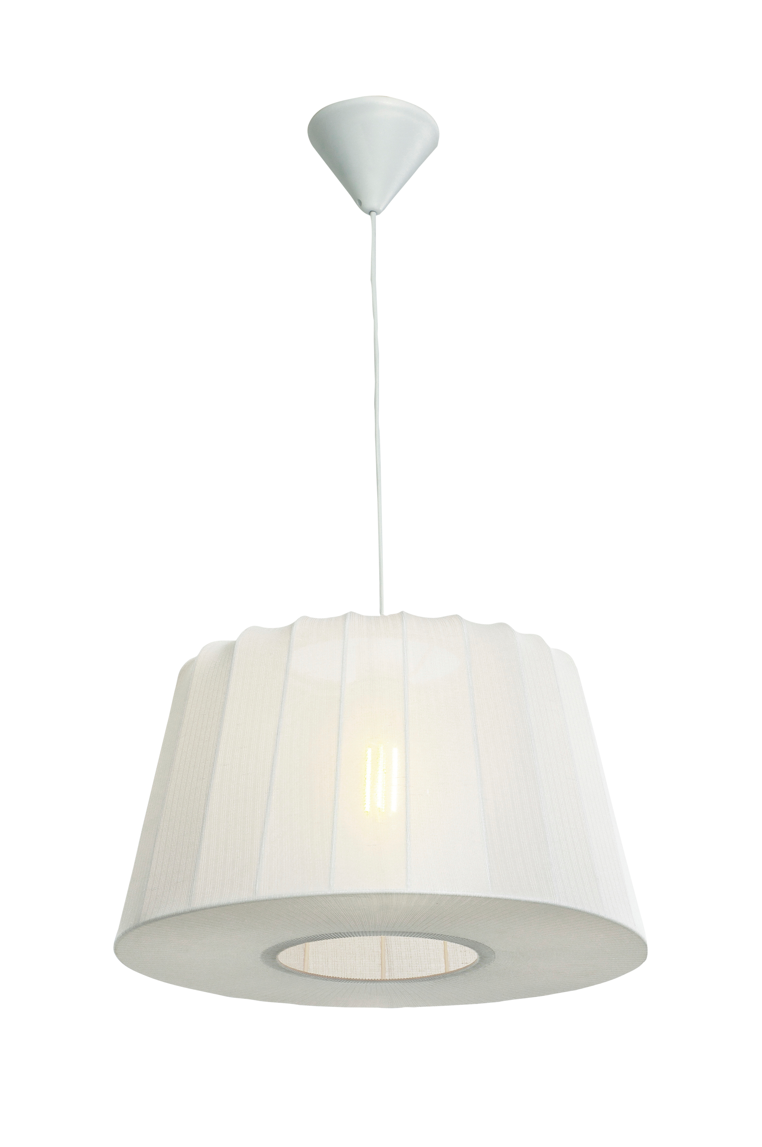 Vackra abril takpendel är klädd i fint stretchigt tyg som filtrerar och sprider ljuset på ett behagligt sätt i rummet. Ett utmärkt val över middagsbordet i köket eller som behaglig allmänbelysning i hallen, vardagsrummet och sovrummet.