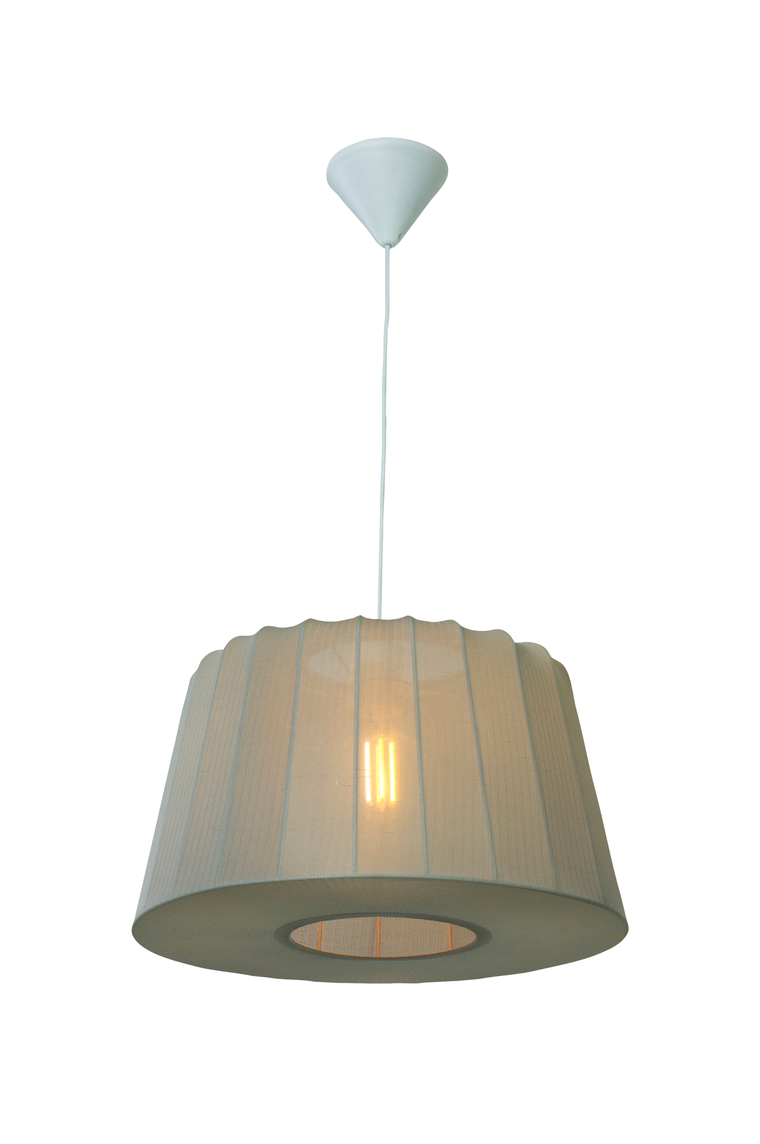 Vackra abril takpendel är klädd i fint stretchigt tyg som filtrerar och sprider ljuset på ett behagligt sätt i rummet. Ett utmärkt val över middagsbordet i köket eller som behaglig allmänbelysning i hallen, vardagsrummet och sovrummet.