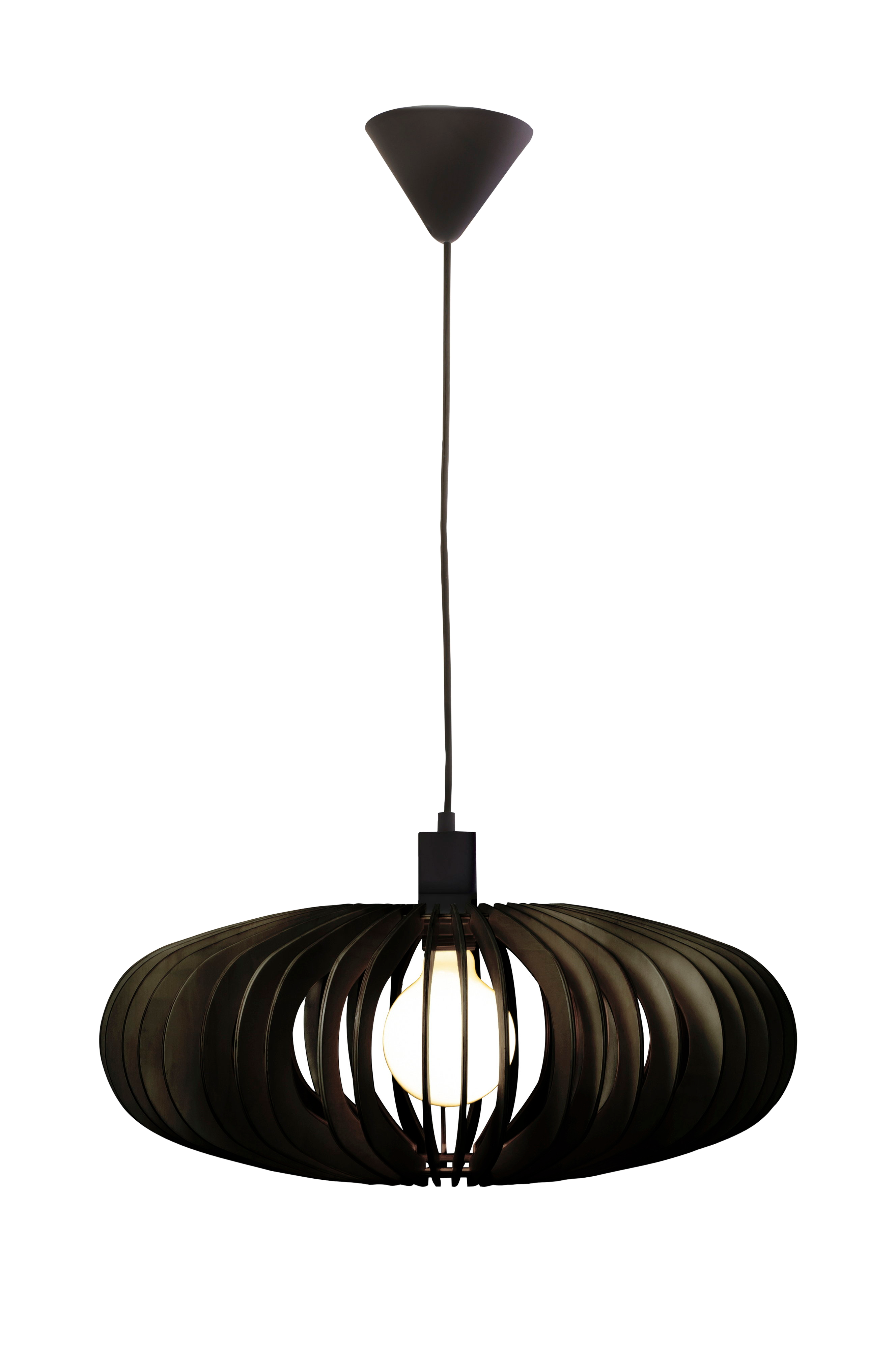 Den eleganta taklampan arcos är tillverkad av välvda träribbor som skapar en vacker ljus- och skuggeffekt. Den passar lika bra över köksbordet som i vardagsrummet där man vill ha ett bra allmänljus.