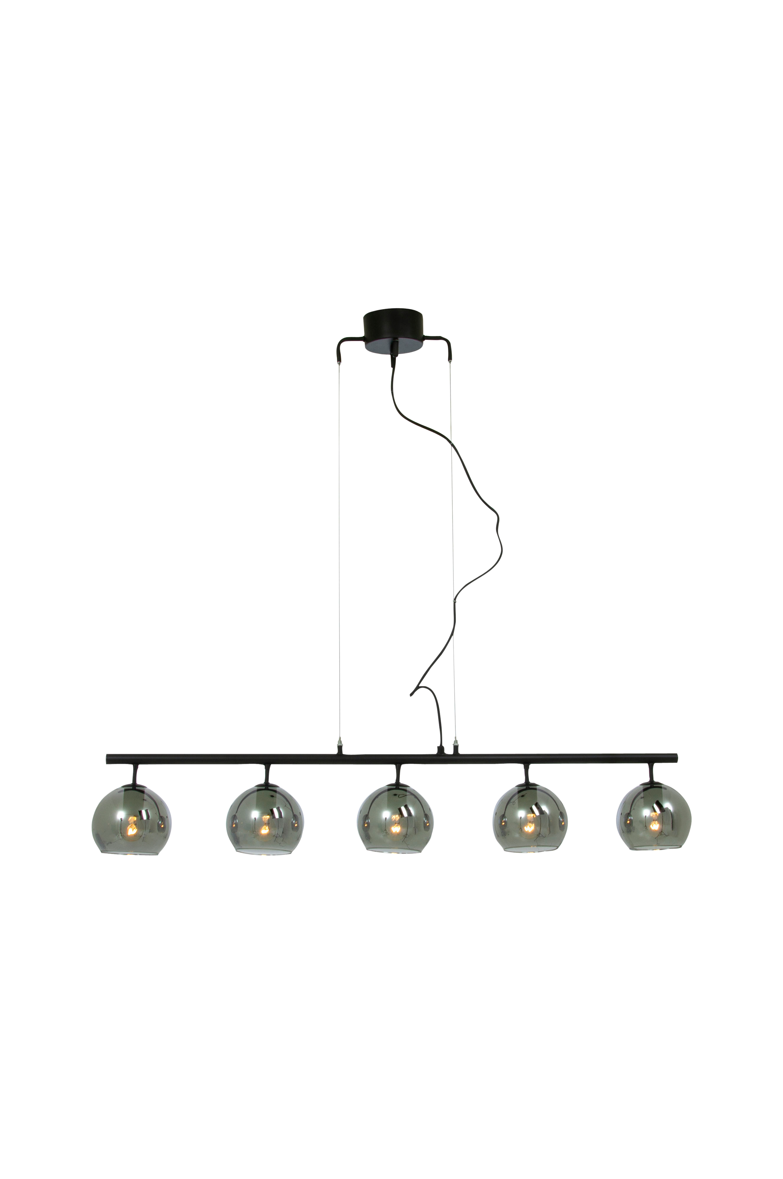 Atom är en modern taklampa med fem vackert rökfärgade glaskupor. Atom blir ett spännande inslag i inredningen oavsett om du placerar den över matbordet, soffbordet eller byrån. Lampan är justerbar i höjd där minsta totalhöjd är 35 cm och högsta är 160 cm. Atom taklampa kan även kombineras med andra lampor i Atom-familjen.