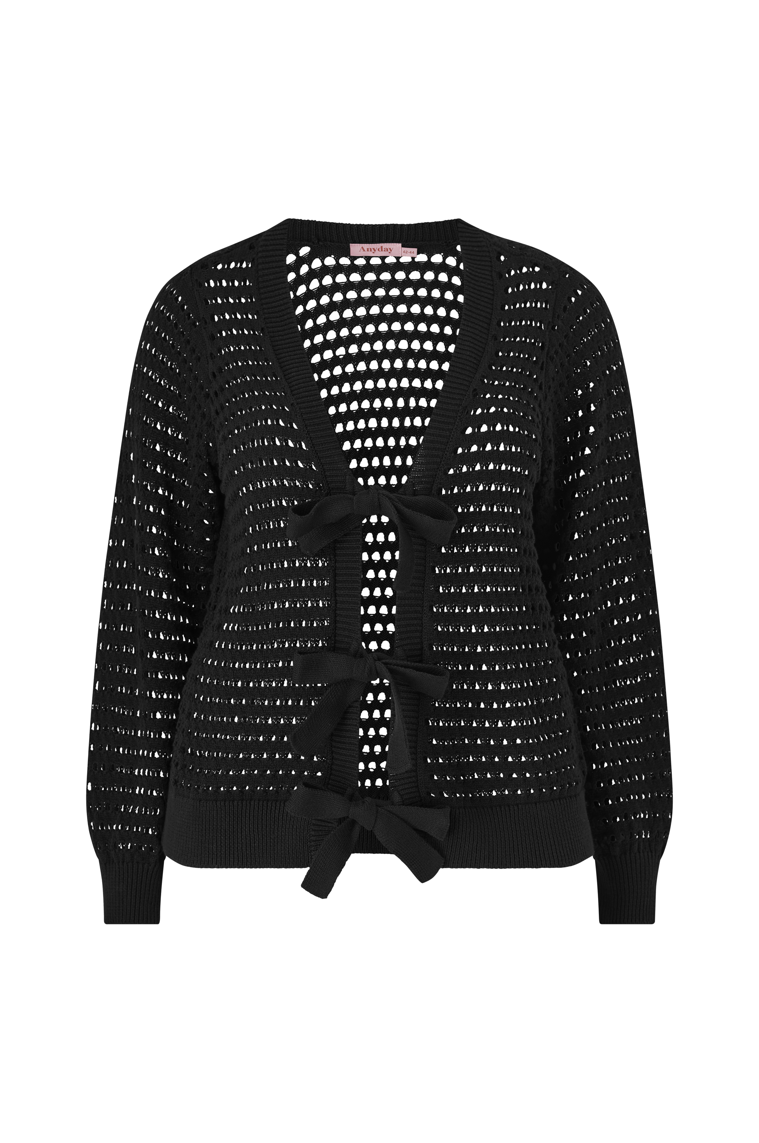 • Glesstickad cardigan med lös passform• Stängning med knytband fram• Ribbmuddar i ärmsluten• Ribbad nederkant• Plusstorlekar