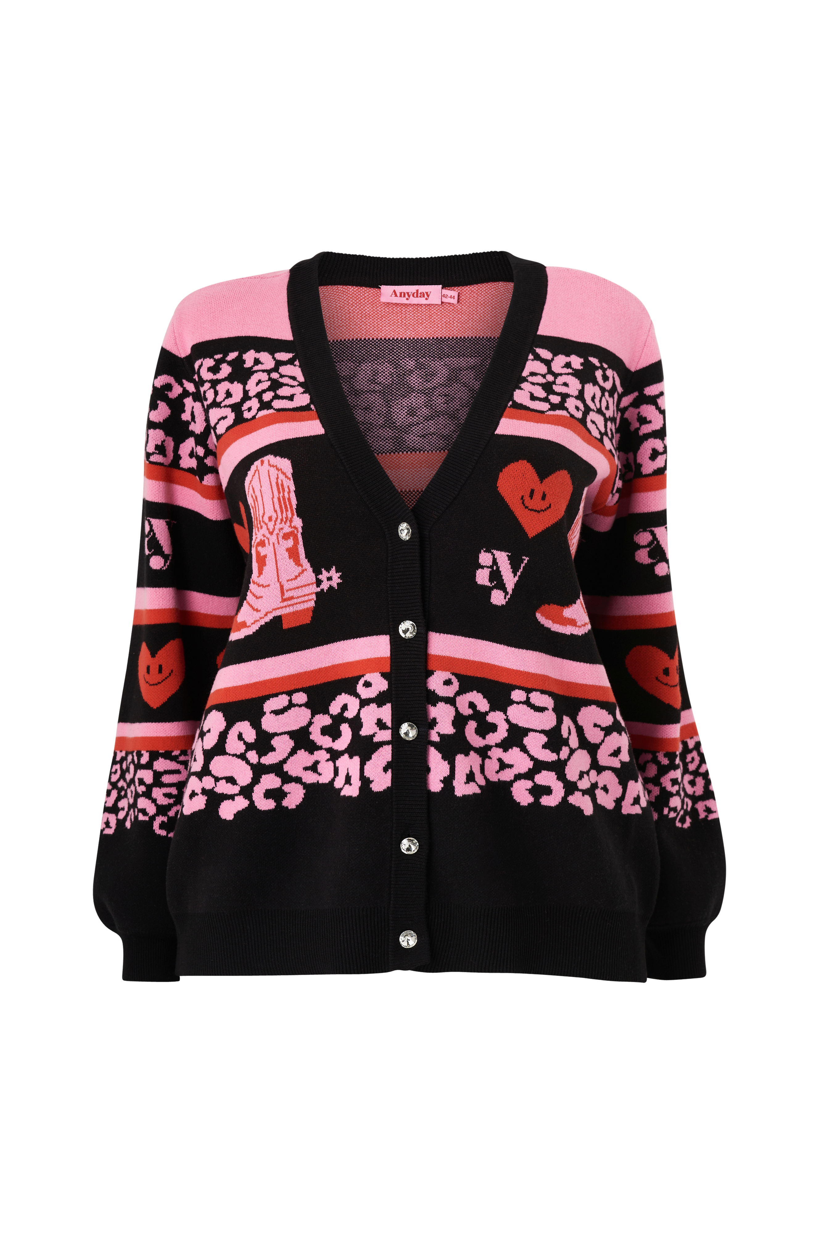 • Plusstorlekar• Mönsterstickad modell• Djup v-ringning• Glittriga, dekorativa knappar• Ribbstickade kanter