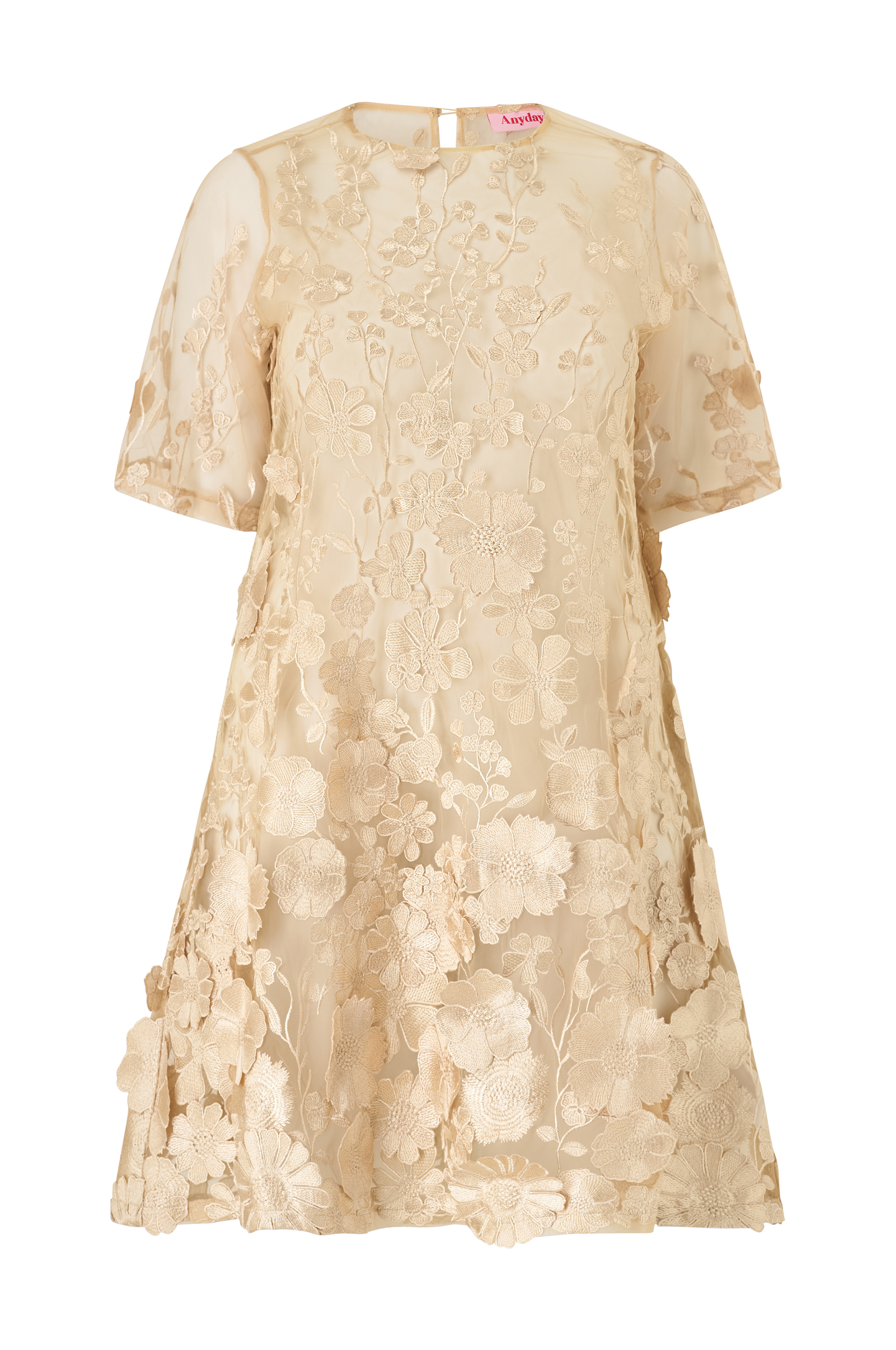 • Klänning i mesh med broderade spetsdetaljer över hela• Broderade 3D-blommor• Rund halsringning• Sprund med knapp i nacken• Korta ärmar• Plusstorlekar• Längd: 101 cm i storlek 42/44