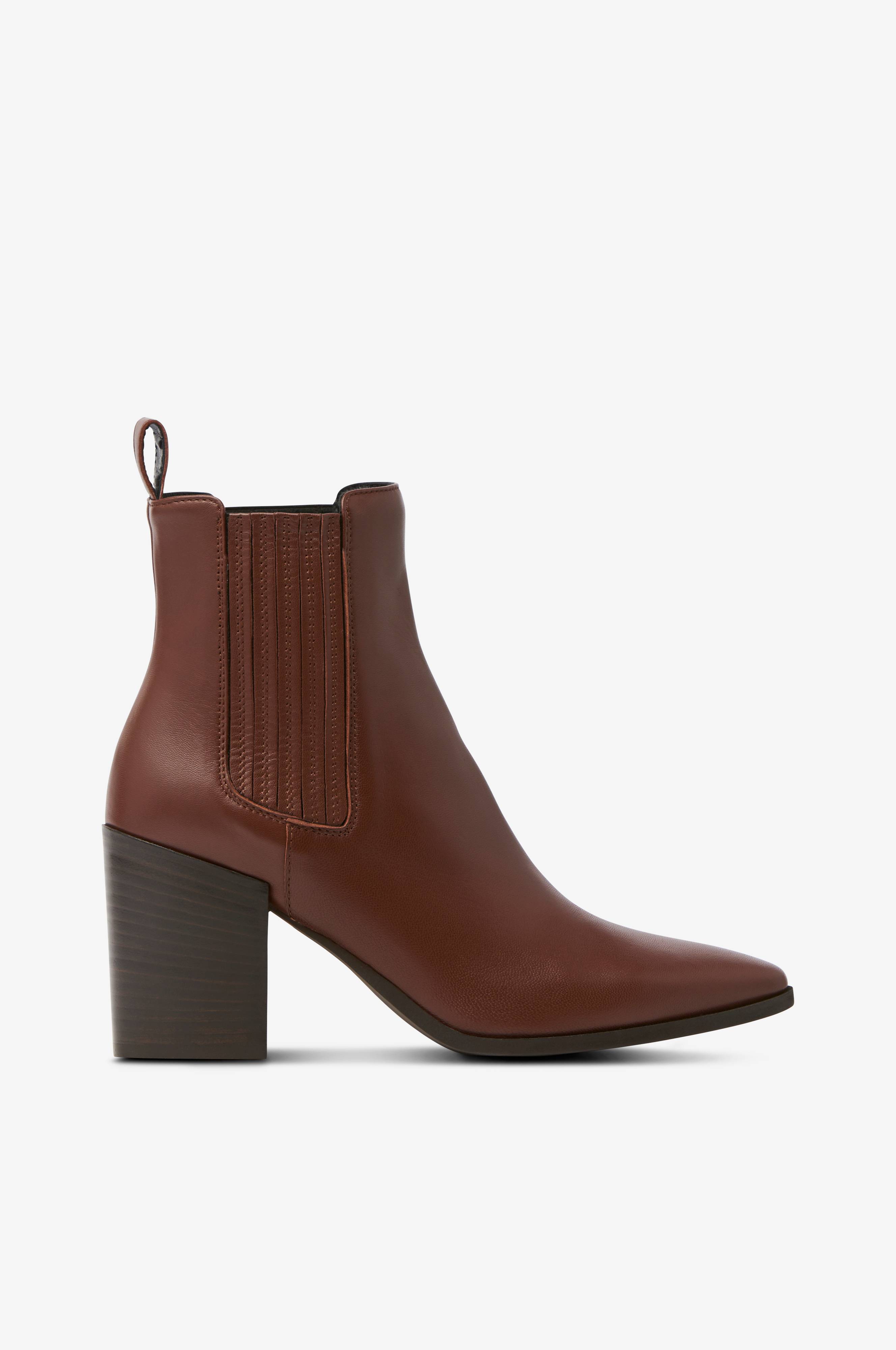 Boots från Apair. Cowboyinspirerad modell av mocka med lätt spetsig tå och infälld resår på båda sidor om skaftet. Tamp baktill på skaftet och hög, träinspirerad klack. Foder i skinn.