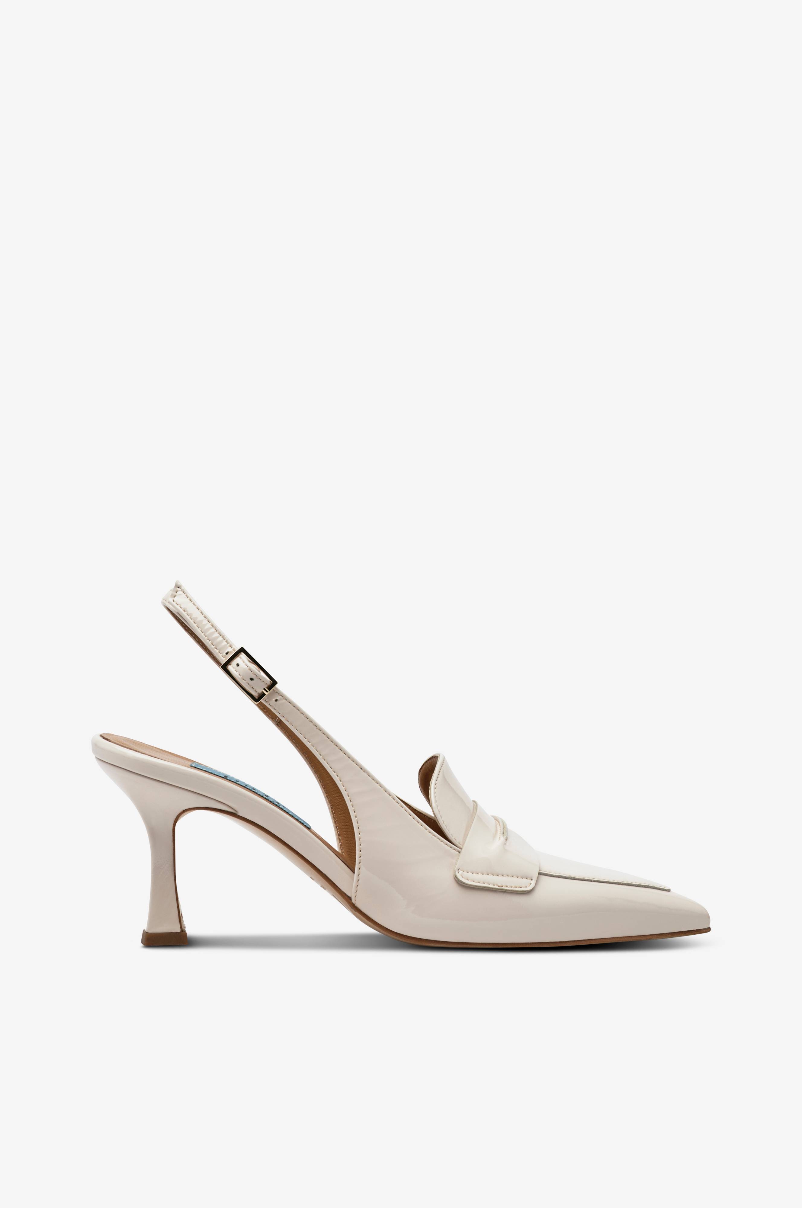 • Spetsig tå• Rem med spänne bak• Klackhöjd: 7,5 cm